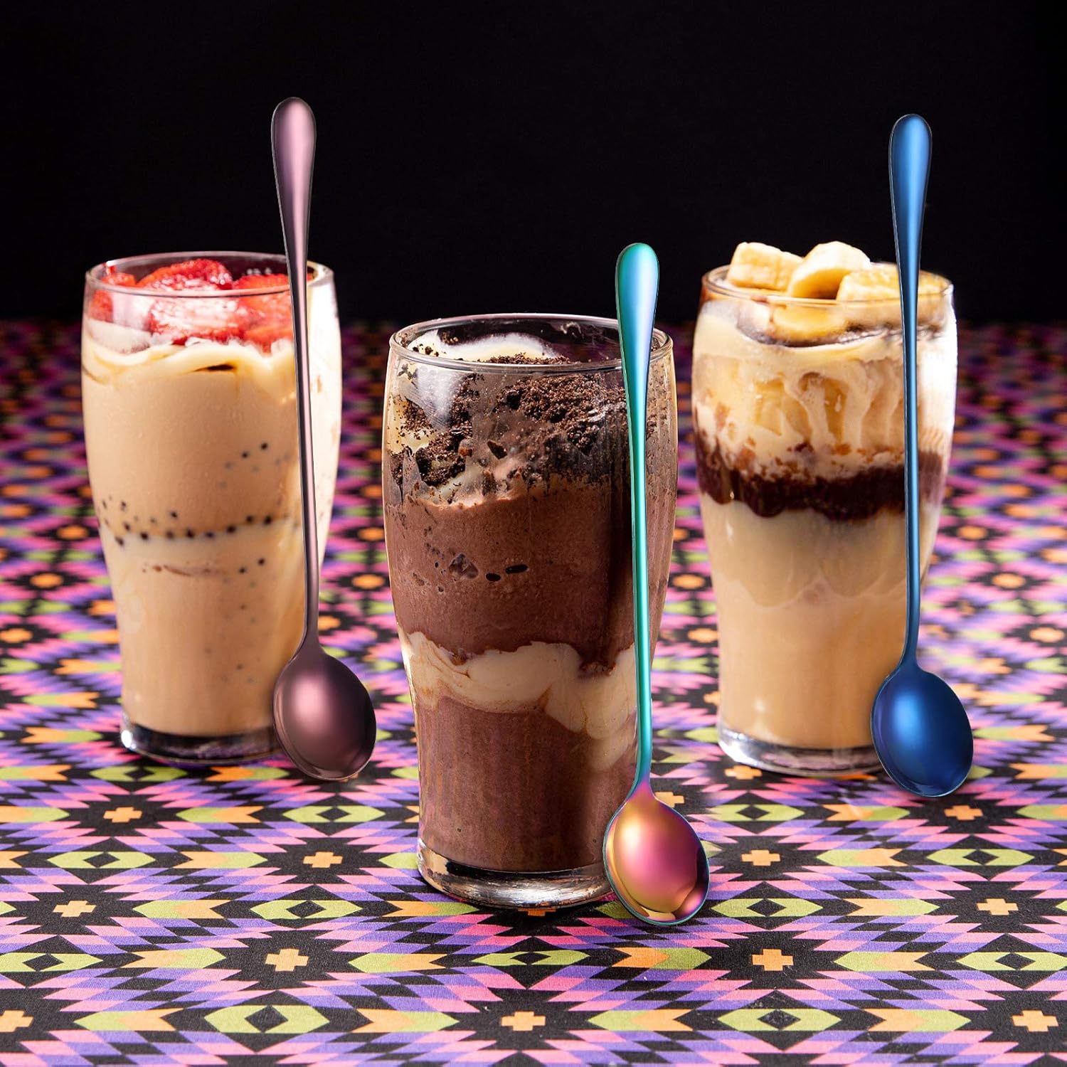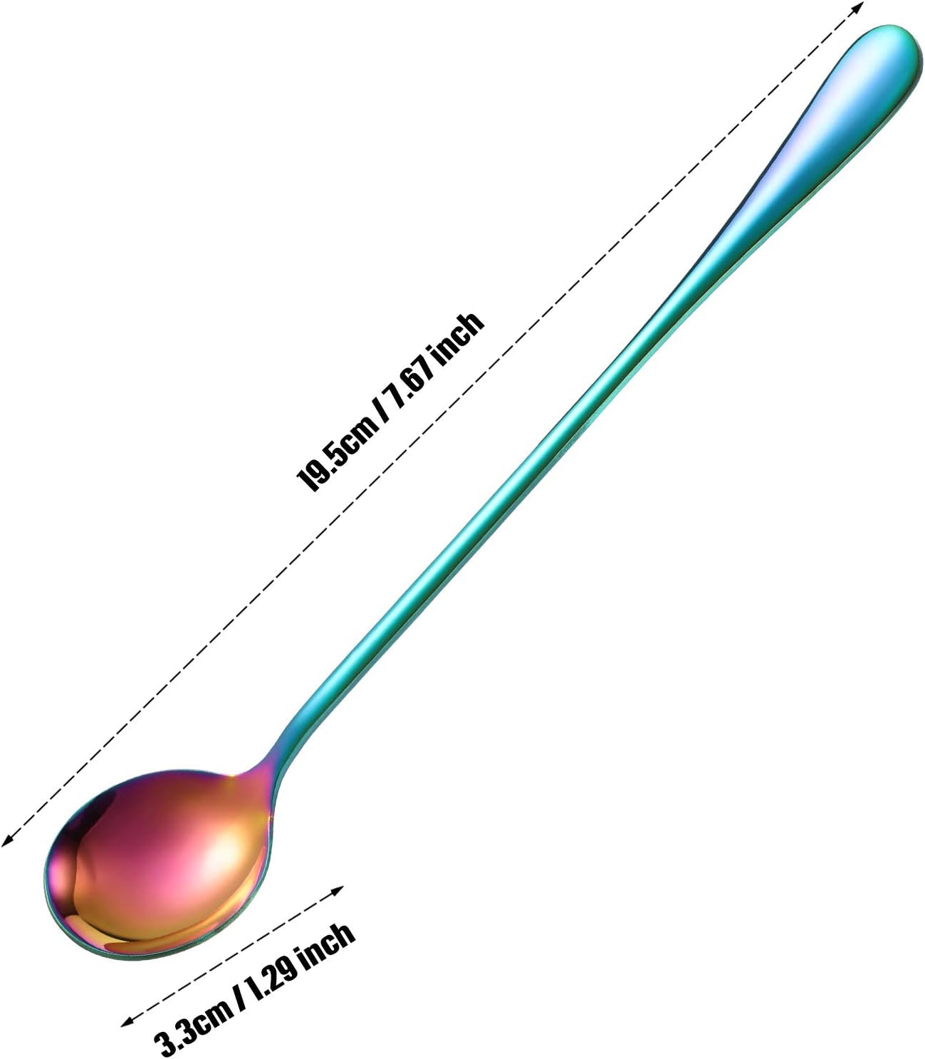 - Package included: 8 pieces stainless long handle tea spoon in 4 different color, the length is about 7.48 inch/ 19 cm, can directly to the bottom of ice cream, soda glass and dessert cup, milk shake, tall coffee mugs