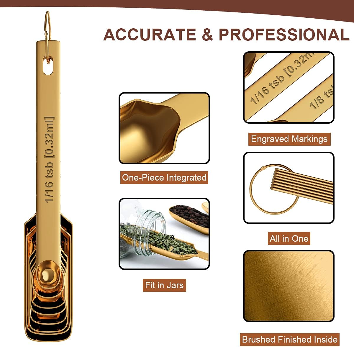 - CONVENIENT TO USE: The rectangular design of the measuring spoons is slim and narrow to fit into small spice jars or herb containers, ideal for measuring any amounts. You don't need to shake spices onto the spoon so you will save more and waste less of your spices and also make your kitchen clean and no more clutter