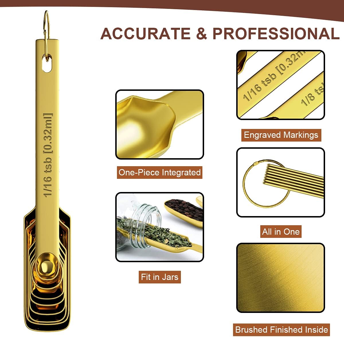 Wildone Gold Measuring Cups & Spoons Set of 21 - Includes 7 Stainless Steel Nesting Measuring Cups, 8 Measuring Spoons, 1 Leveler & 6 Mini Measuring Spoons, Ideal for Dry & Liquid Ingredients