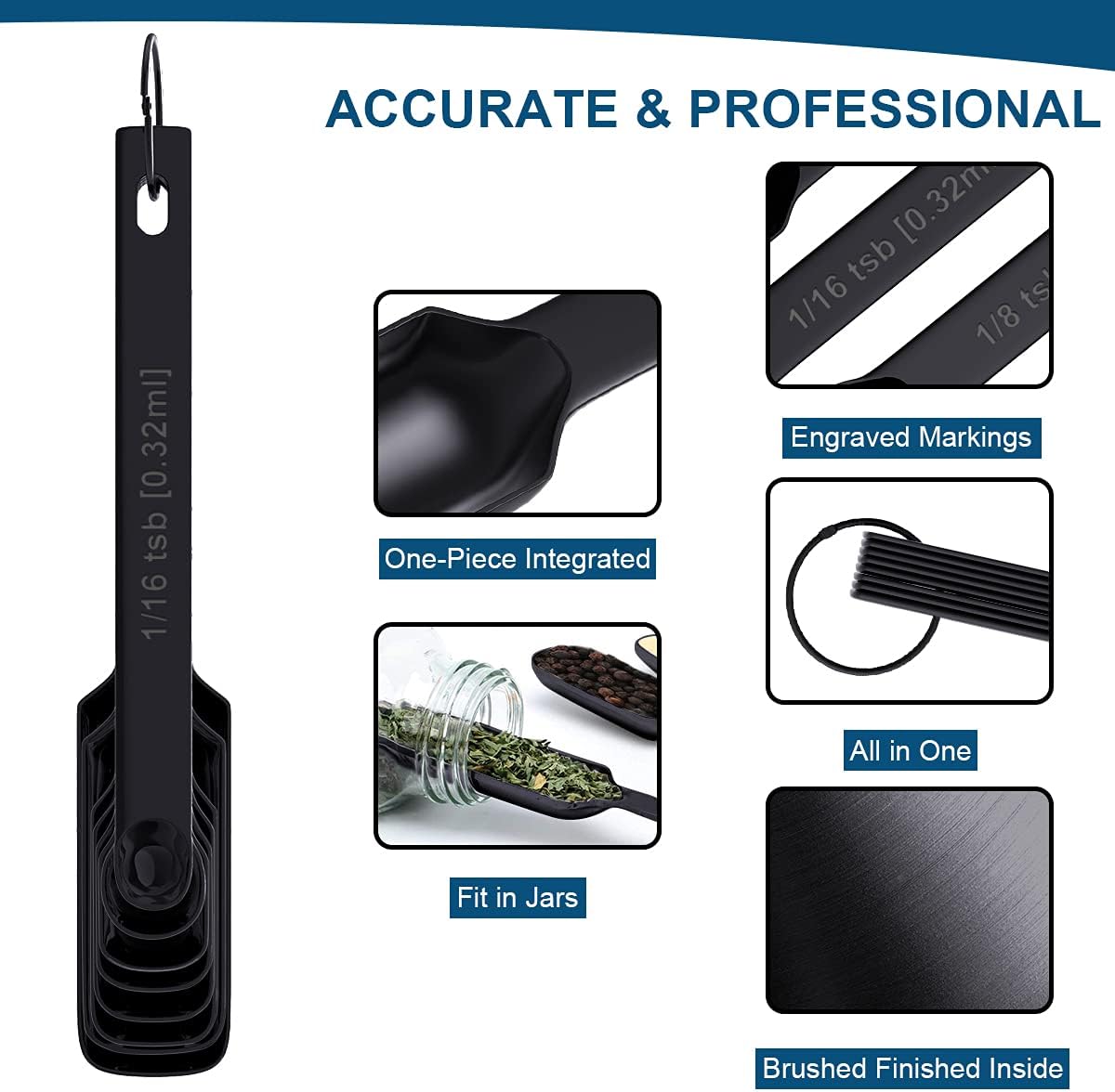 - CONVENIENT TO USE: The rectangular design of the measuring spoons is slim and narrow to fit into small spice jars or herb containers, ideal for measuring any amounts. You don't need to shake spices onto the spoon so you will save more and waste less of your spices and also make your kitchen clean and no more clutter