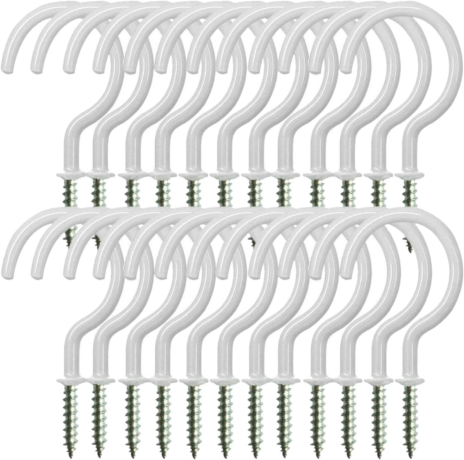 - Package Include: 24 Pack 2.9 Inches Vinyl Coated Screw-In Ceiling Hooks, White, More quantity. Good value for money! Meet your needs.