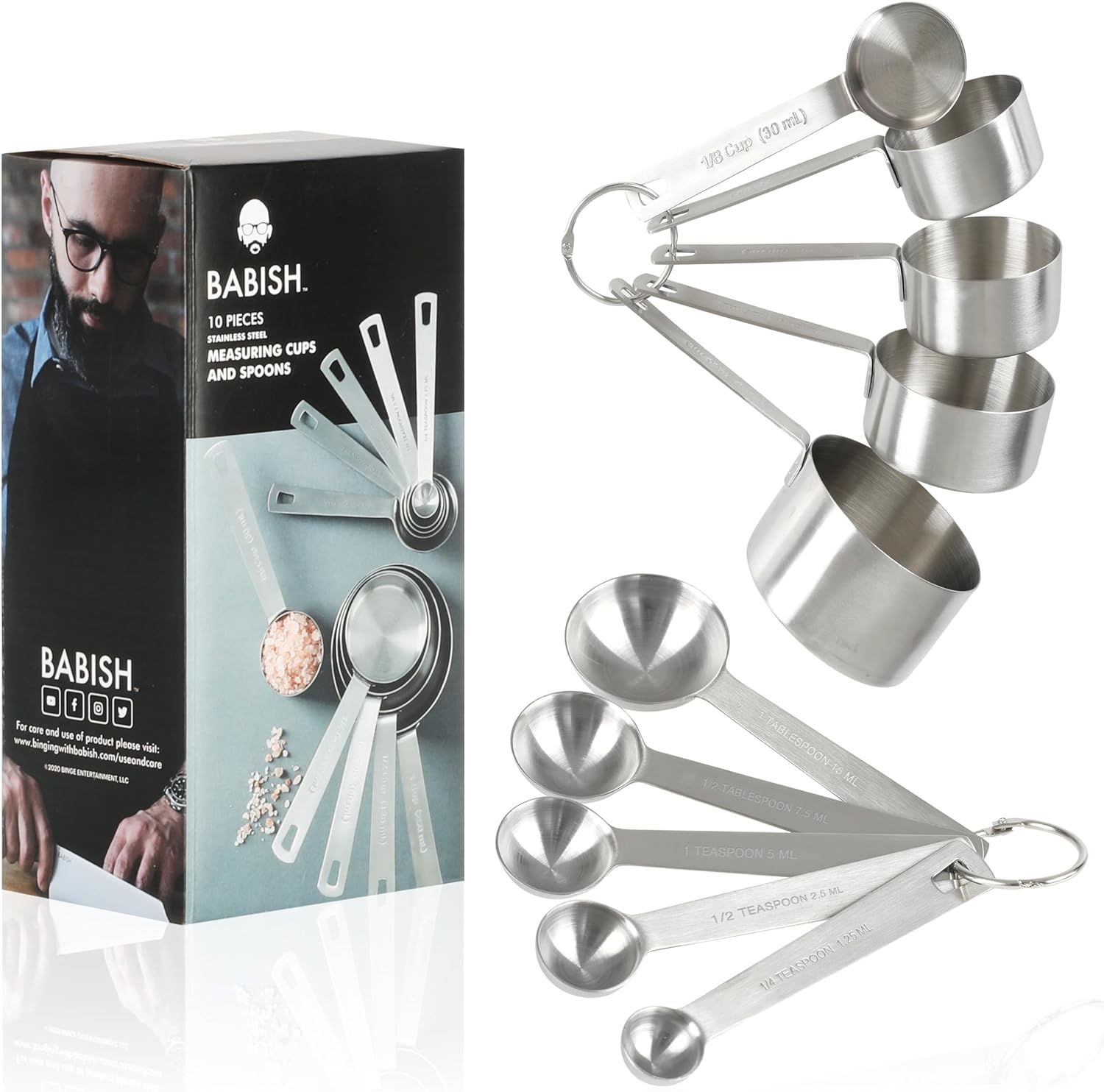Babish 10-Piece Stainless Steel Measuring Cups & Spoon Set