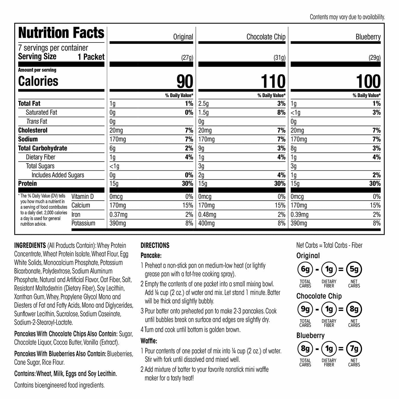 - Delicious Pancake & Waffle Mix: Not only is our protein & waffle mix a tasty treat for the taste buds but also a smart choice for those seeking a protein boost in their daily routine at only 90-110 calories & 2.5g or less of fat per serving.