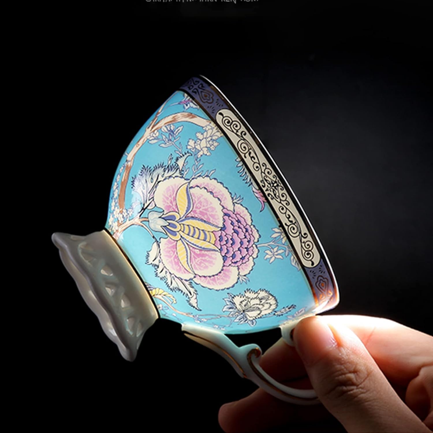 - Exquisite Design: The vivid patterns and the mysterious blue of vintage tea cups and saucers set make you feel like you are in the wonderful nature.The gold traced parts on the bone china tea cups and saucers set for women add to the overall luxury and make it even more charming.