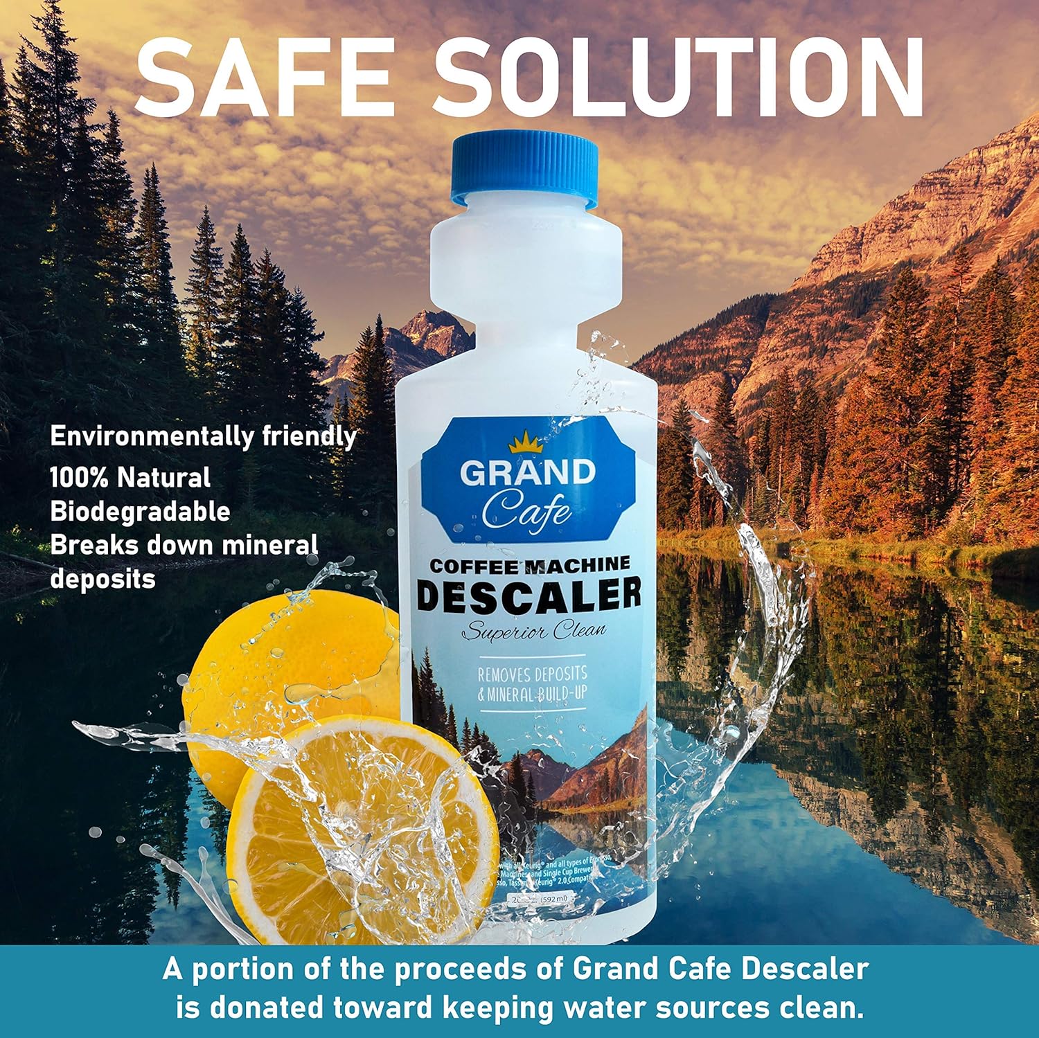 - Crystal Clean Formula – with a safe and ecofriendly formula Grand Cafe removes stubborn deposits and minerals that ultimately alter taste and performance in your coffee maker while leaving no residue. With 5 cleans per bottle Grand Cafe is certain to deliver a superior clean over the competition.
