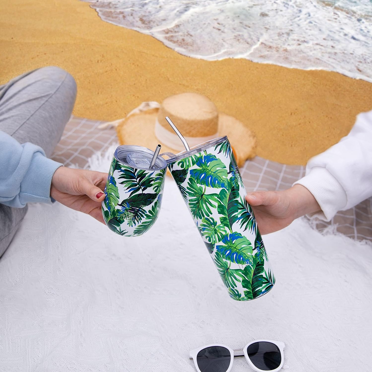 THILY Tumbler Stainless Steel Coffee Cup 26 oz Triple-Insulated Travel Mug with Splash-Proof Lid, for Ice Drinks and Hot Beverage Smoothies Cup, Green Plants