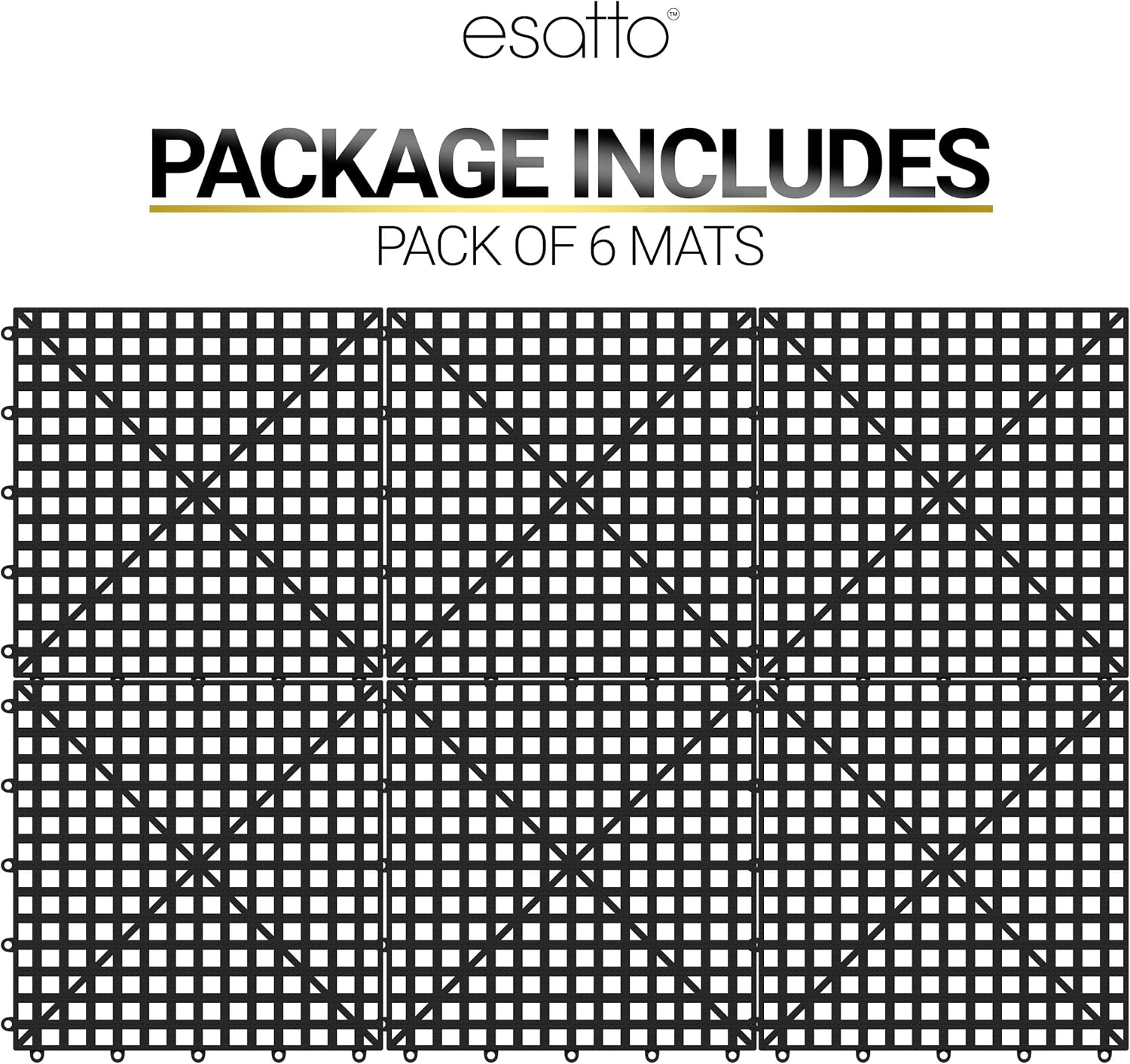 Esatto 6 Pack Interlocking Shelf Mats 12″, Black – for Spills, Clean Bars, Stain Protection, and an Anti-Slip Surface