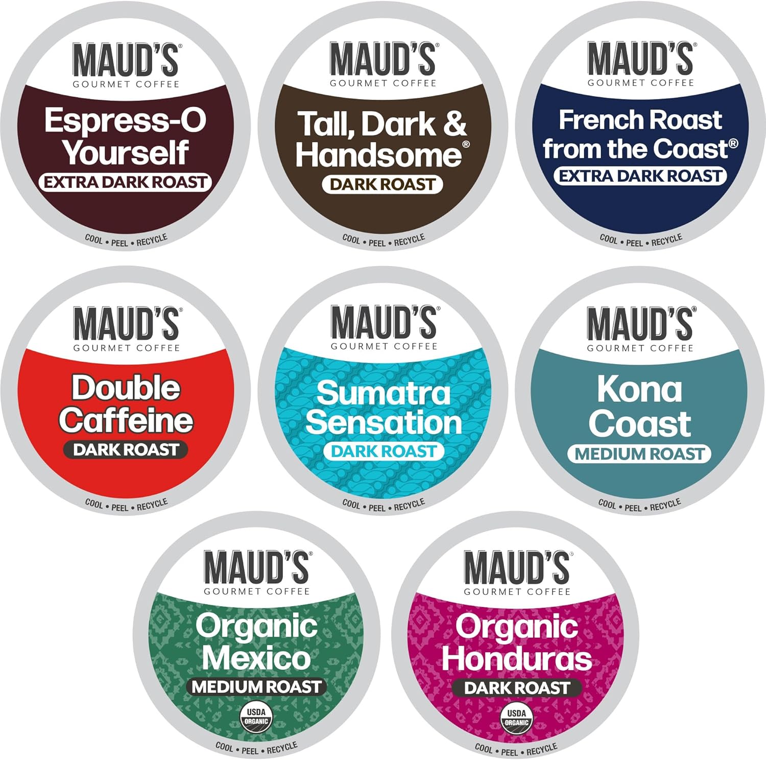 Maud's Bold Dark Roast Coffee Pods Variety Pack, 40 ct, 8 Assorted Dark Roast Flavors in Recyclable Single Serve Pods – 100% Arabica Coffee, Compatible with Keurig K Cups Maker
