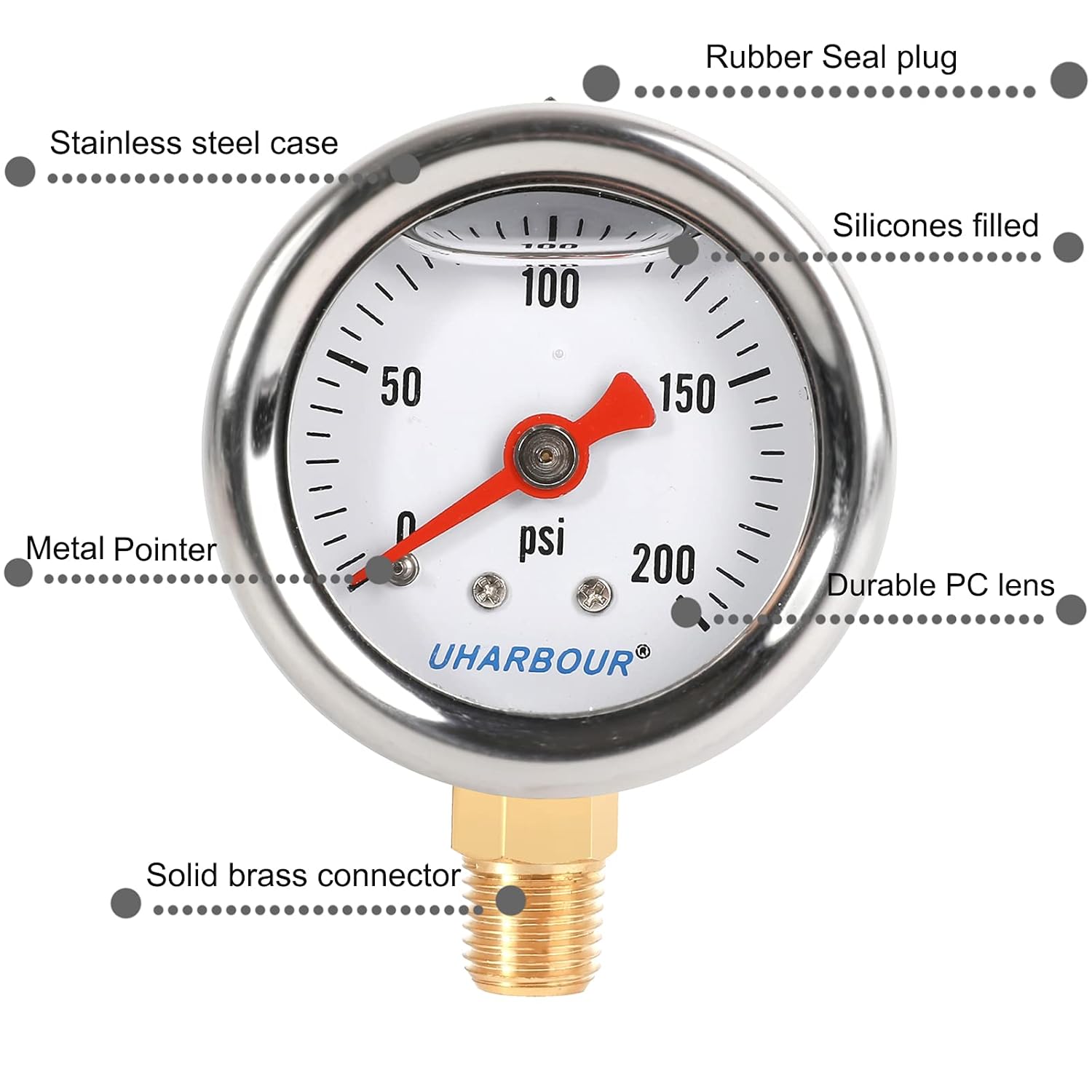 - DURABLE BUILD: The stainless steel construction is built to outlast the competition from normal steel or plastic gauge. The superior quality stainless steel and brass components ensure the gauge corrosion resistance and extends the gauge life.