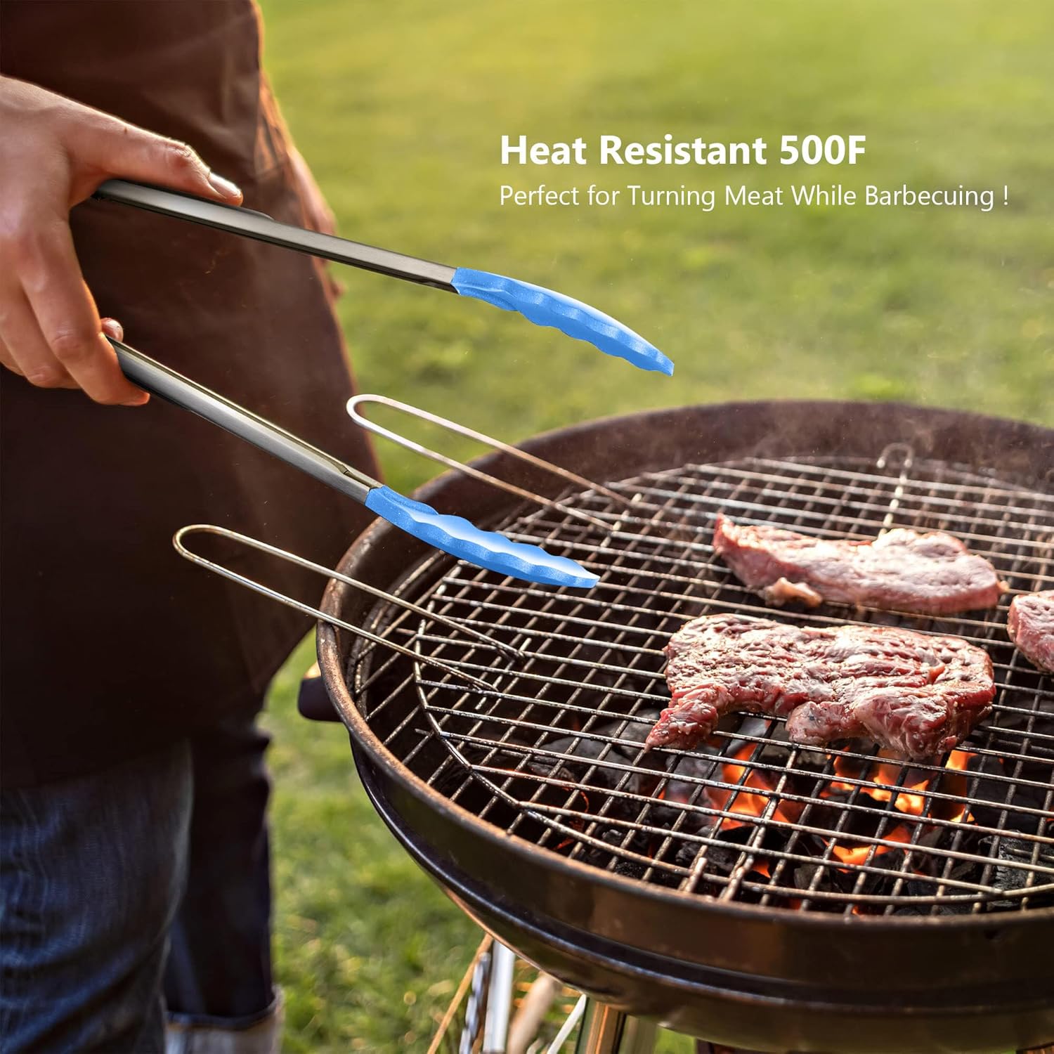 Silicone Spatulas Set Turners Tongs Cooking Utensils Set High Heat Resistant Kitchen Scraper Spatulas for Cooking Mixing Baking BPA Free Dishwasher Safe, Blue