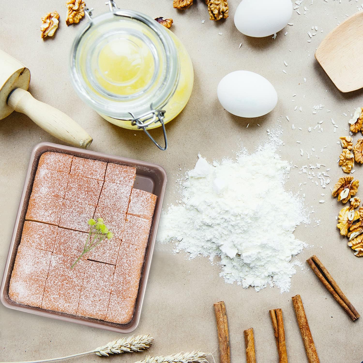 - Non-stick, Easy to Clean- The non-stick baking sheet has great mirror finish to reduce the risk of food sticking, easy to release the food while effectively reducing grease adsorption, makes it easy to clean up, just rinse the rectangle cake pan oven pan under water or run through the dishwasher