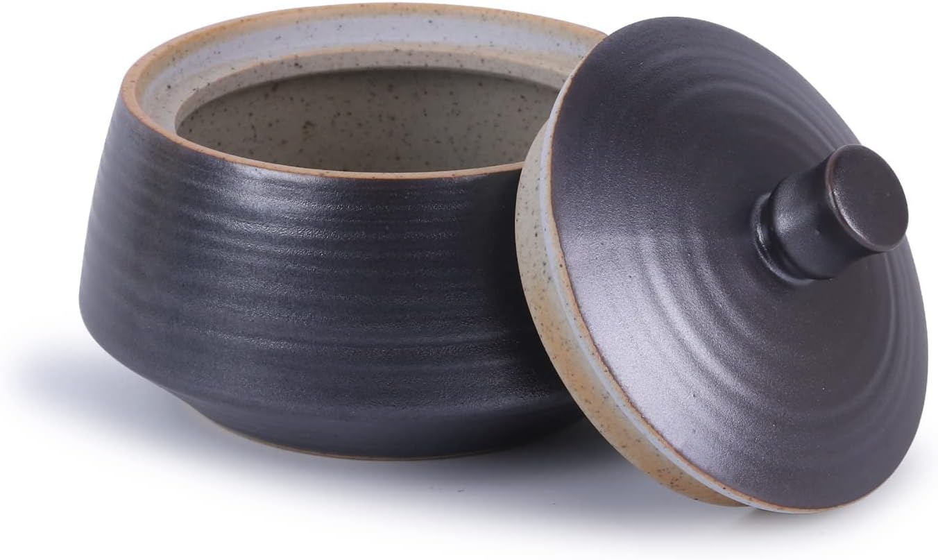 - 【SUITABLE CAPACITY】: About 13.53 OZ(400ml), Dimensions - 4.40 inches in diameter, 3.35 inches in height. Small and Exquisite Ceramic Food Storage Jar.