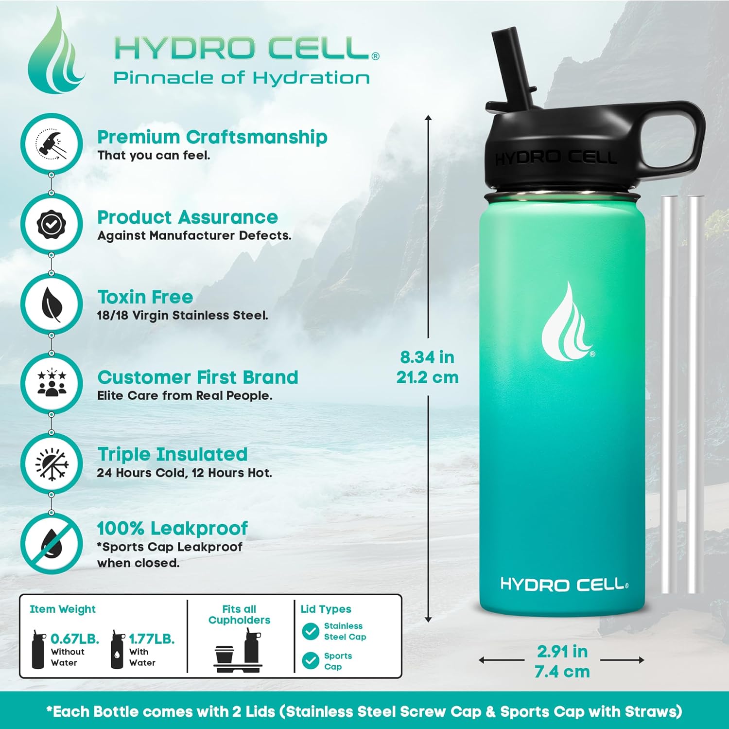 - STYLE: Purchase Includes Stainless Steel Bottle, Screw Cap (100% Airtight), Bonus Sports Cap with Straws (Cold Temp ONLY). Hydro Cell offers the largest selection of matching Paracord Handles, Bottle Boots, and Color Replacement Caps: Sold Separate, Linked Below. Customize your Hydro.