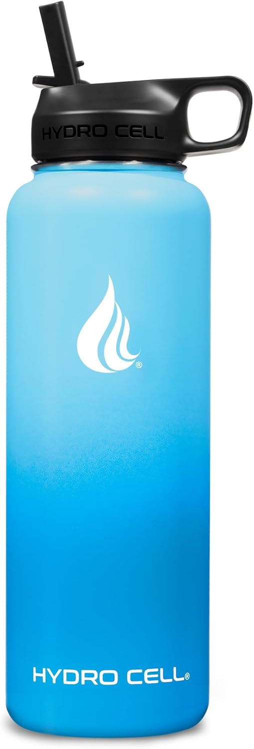 HYDRO CELL Stainless Steel Insulated Water Bottle with Straw - For Cold & Hot Drinks - Metal Vacuum Flask with Screw Cap and Modern Leakproof Sport Thermos for Adults (Sky/Blue 40oz)