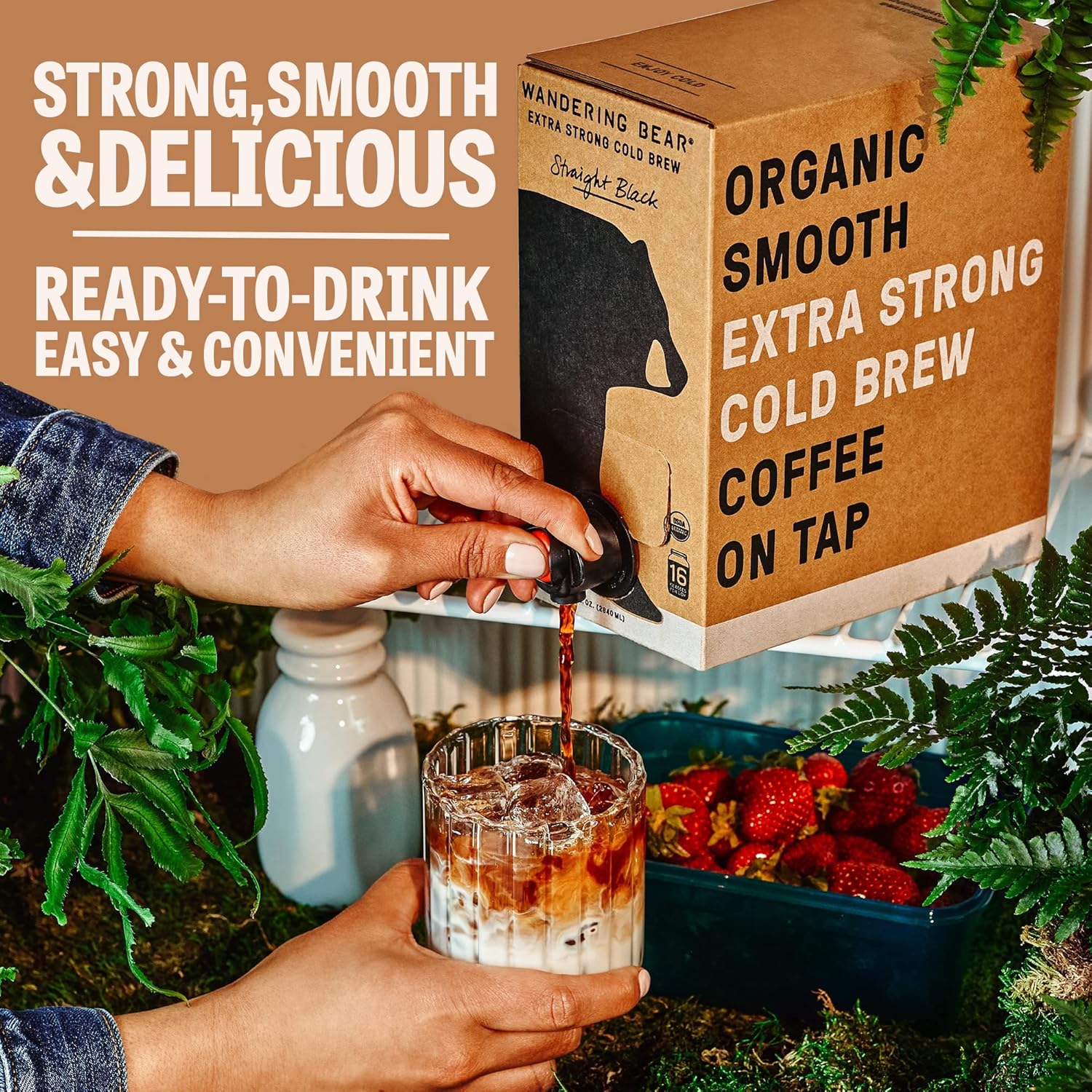 Wandering Bear Decaf Cold Brew Coffee On Tap, 96 fl oz - Bold, Smooth, Unsweetened, Shelf-Stable, Ready to Drink, Iced Cold Brewed Coffee Drinks - Gluten Free & Vegan Decaf