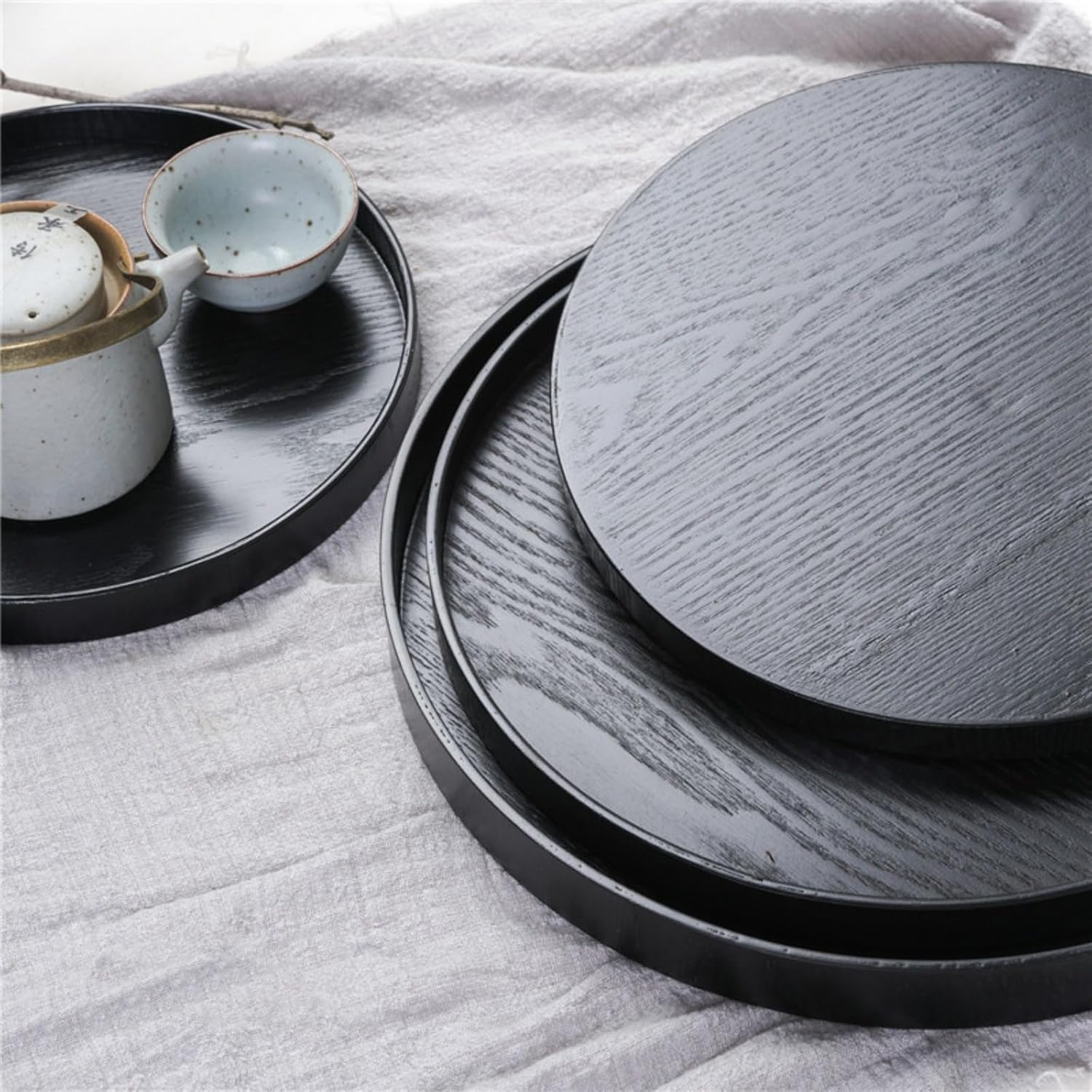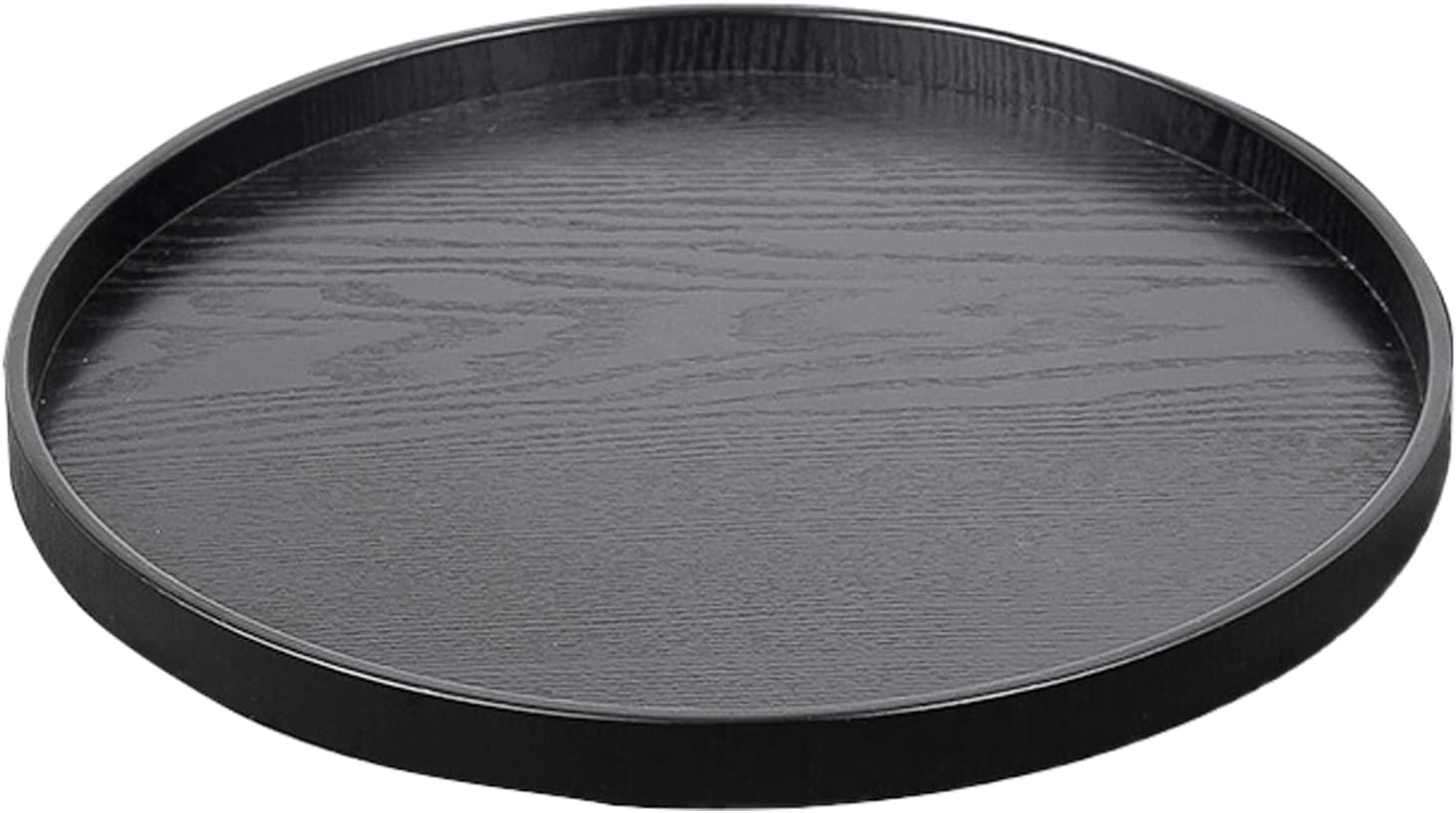- 【With Raised Edges】Versatile serving tray, with raised edges to prevent spillage of your favorite food and drink, and it is easy to hold.black round display tray. Perfect smooth surface and color makes it looks great in your restaurant or your home, modern and elegant.black round wooden coffee table tray.
