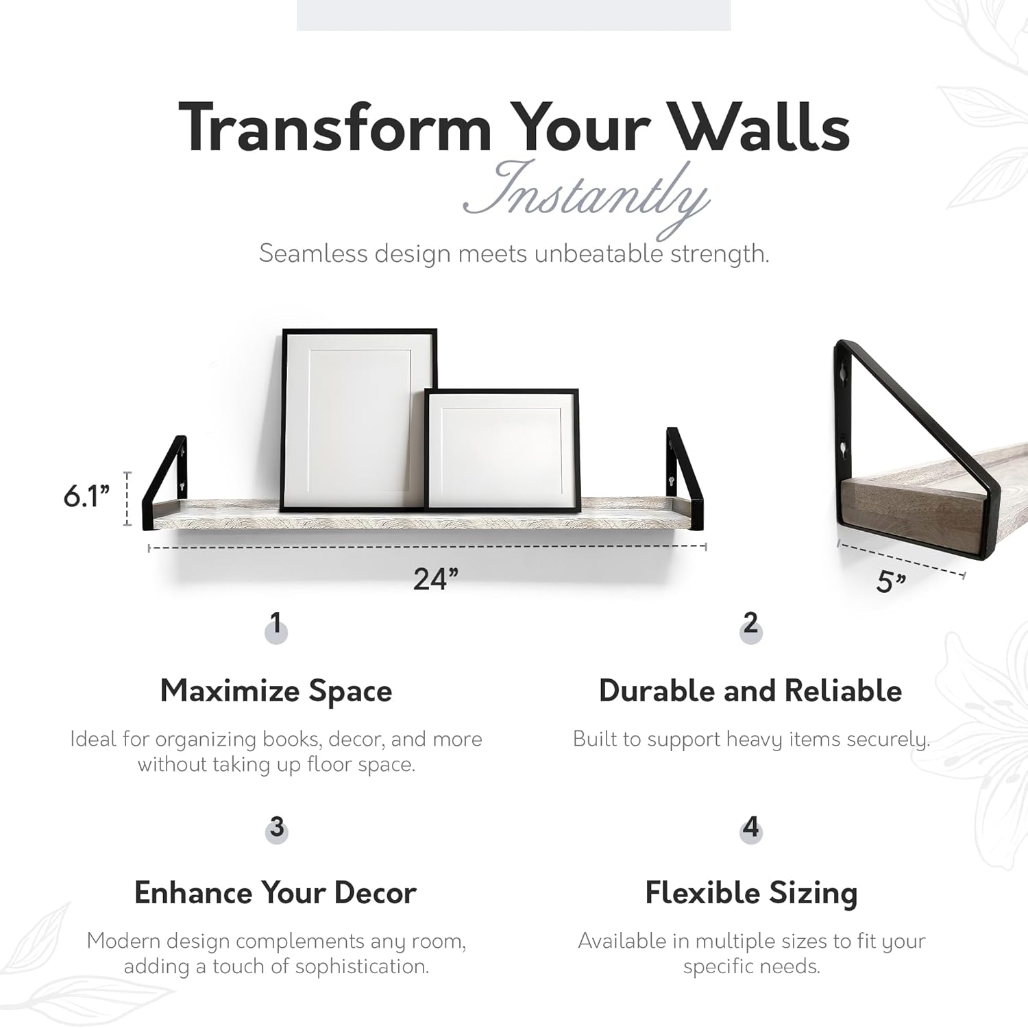 - RUSTIC MEETS MODERN The industrial brackets and sleek design make this white floating shelf a perfect fit for minimalist, farmhouse, or modern home decor themes.