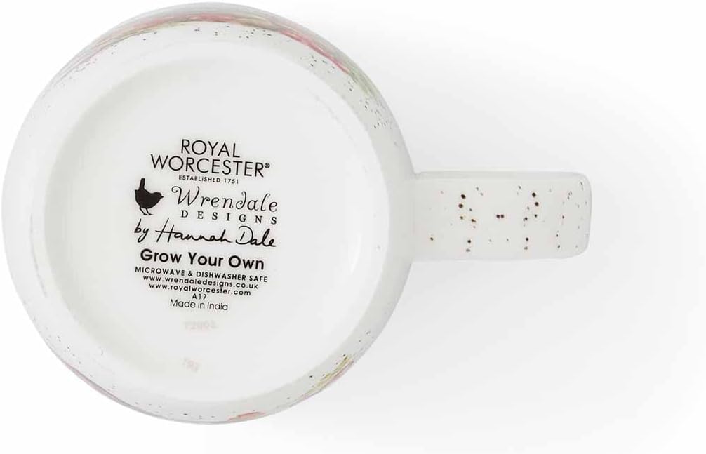 Royal Worcester Wrendale Designs 14 oz Mug, Grow Your Own with Bunny Illustration - Floral Animal Mug for Cottagecore Kitchens - Microwave, Dishwasher, Freezer Safe Fine Bone China Drinkware