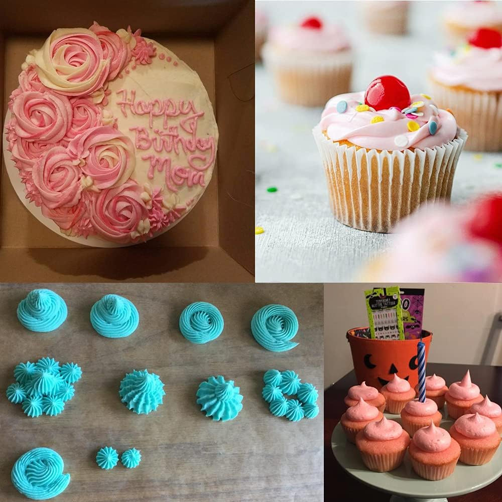 - WIDE APPLICATION:Perfect for decorating desserts, cakes, cupcakes, cookies, pastry dough,cookie dough,sugar craft,mashed potatoes, meringues, whipping cream and more.Ideal cupcake decorating tips for beginners or professional.