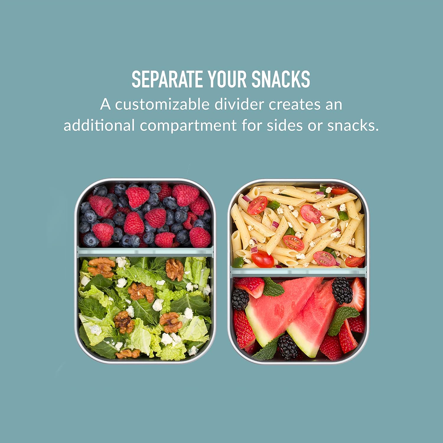 - Customizable Compartments: An optional divider provides a second compartment adding versatility to creating meals, making it the perfect container for packing healthy and balanced foods.