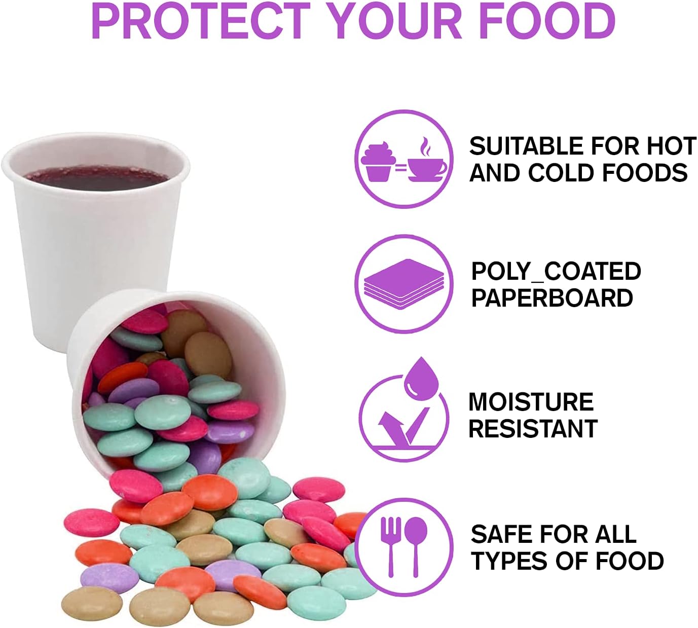- INCLUDES: 100 White Disposable Paper Cups per Sealed Bag - Designed for Hot or cold Beverages without leaking,