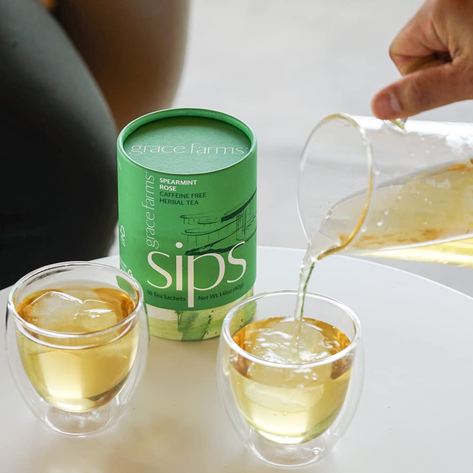 Grace Farms Organic SPEARMINT ROSE Herbal Tea (16 Pyramid Sachets) | Naturally Sweet, Stress Relieving and Caffeine Free | Organic, Fair Trade and Kosher Certified | Delicious Iced Tea | Gives Back 100% of Profits