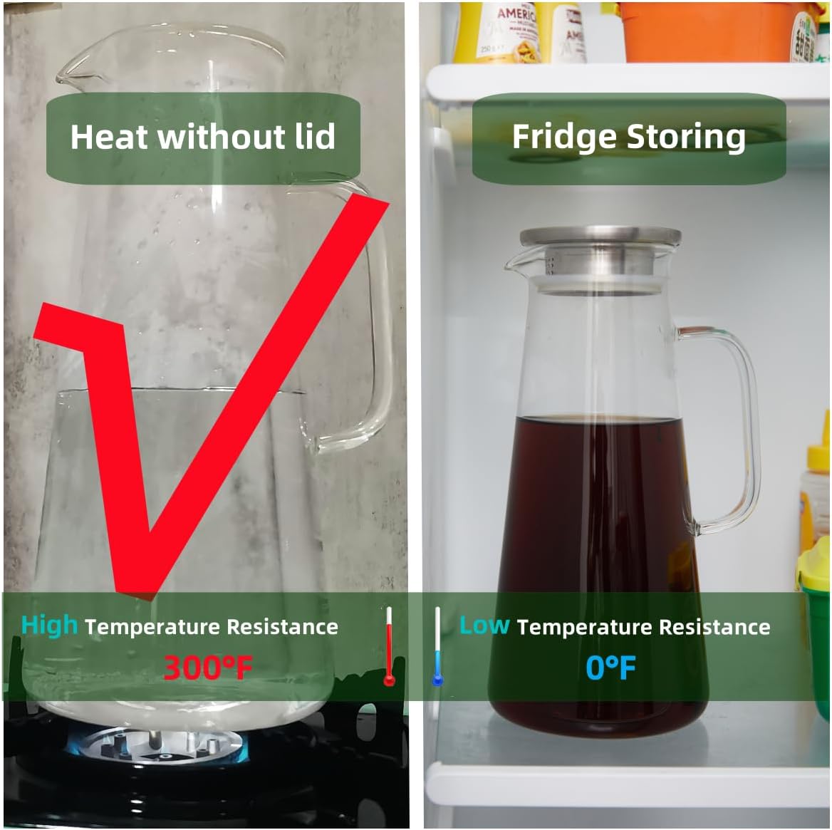 - [Perfect Size] This pitcher's capacity is sufficient for serving your family or hosting guests. Fits well in most refrigerators, making it ideal for preparing and serving cold or hot drinks like water, iced tea, fruit juices, coffee, wine, and a variety of others.