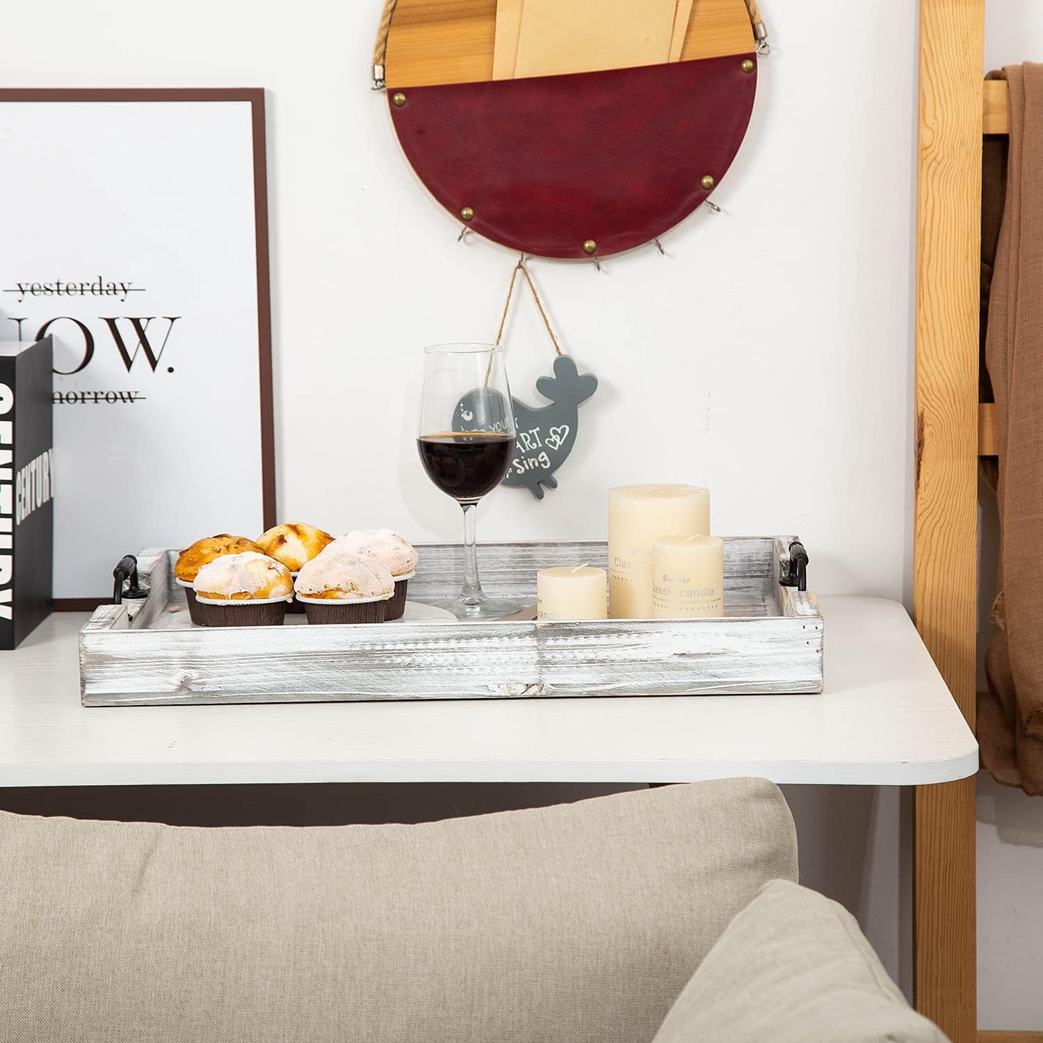 Rustic Vintage Big Wood Food Serving Trays with cutout Metal Handles(20 Inches) large Nesting Board Decorative Serving Trays Platter for Breakfast in Bed, Ottoman, Coffee Table, BBQ, Party(Gray white)