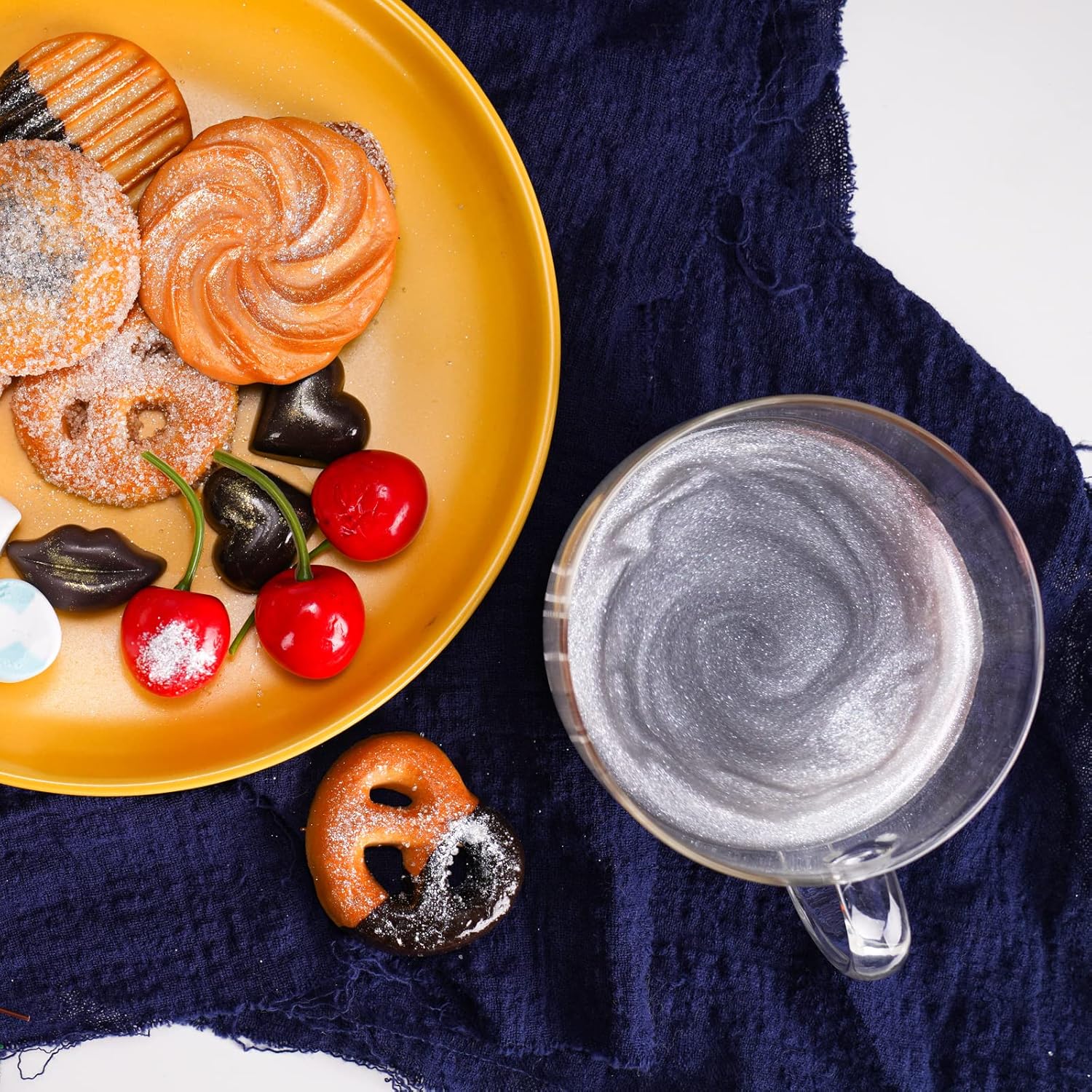 - ✔️【Use with Brews】Food-grade glitters are so fun and simple to use with brews. Add one pinch or two directly to your favorite beverage, mix it with cocktail syrups, juices, liqueurs, liquors, or spirits. Use a clear glass instead of opaque containers so that the liquid looks so cool, especially when you move it around in the glass with a stir. A tiny amount of dust can create a great visual spectacle, and clear liquids offer a great blank canvas for glitter to show off the best ability.