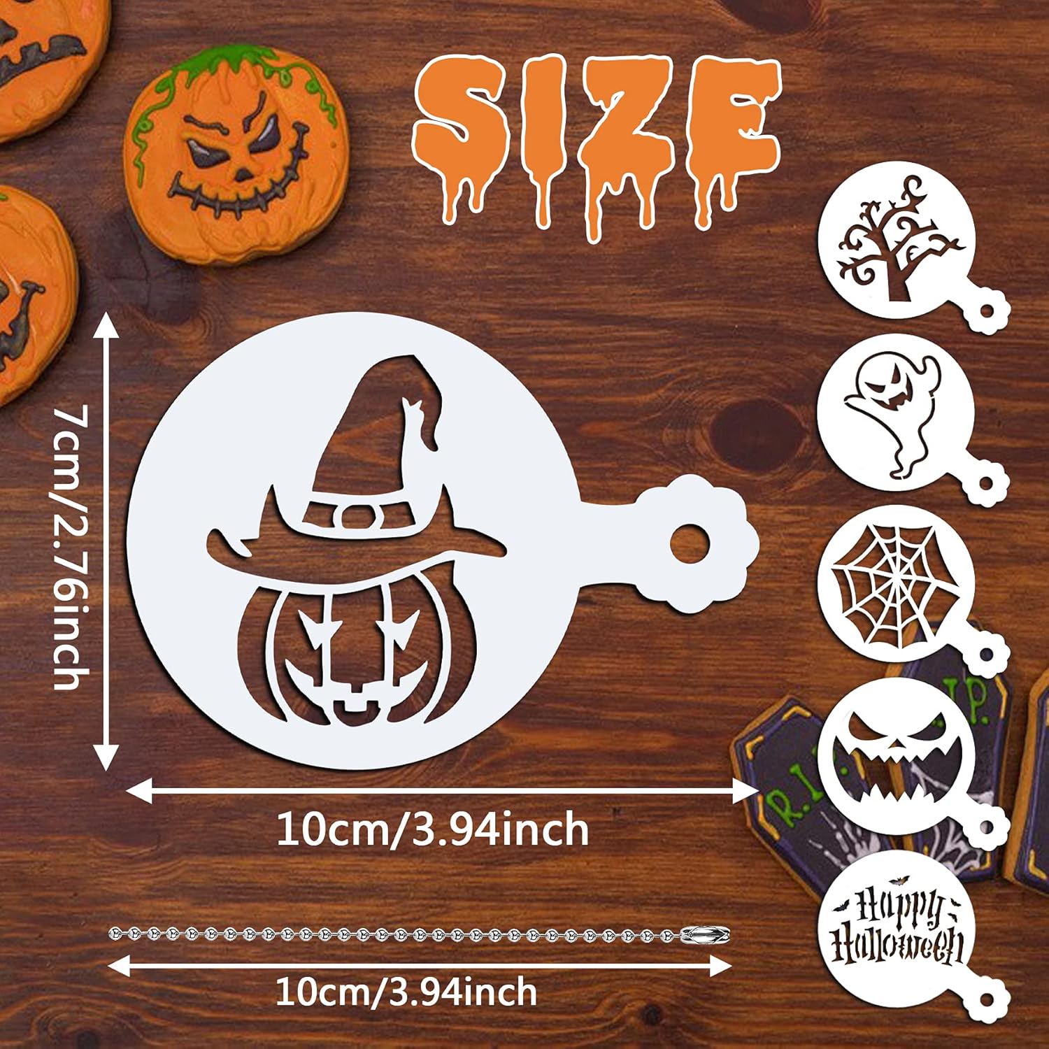- What Will You Receive? - You will get 36 Halloween-themed stencils for cookies and 1 ball beads chain, which includes many classic Halloween patterns, such as pumpkins, skeletons, spider webs, witches, castles, bats, ghosts, coffins, etc. They are suitable for Halloween party, DIY cake, cookie or bread decoration!