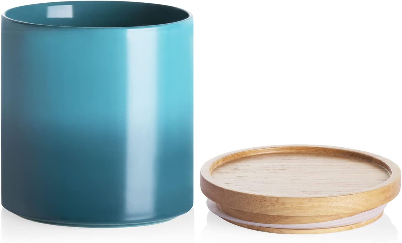 Sweejar Ceramic Food Storage Jar, Stackable Kitchen Canisters, Containers with Airtight Seal Wooden Lid for Serving Ground Coffee, Tea, Sugar, Salt and More - 16 Fl Oz (Gradient Blue)…