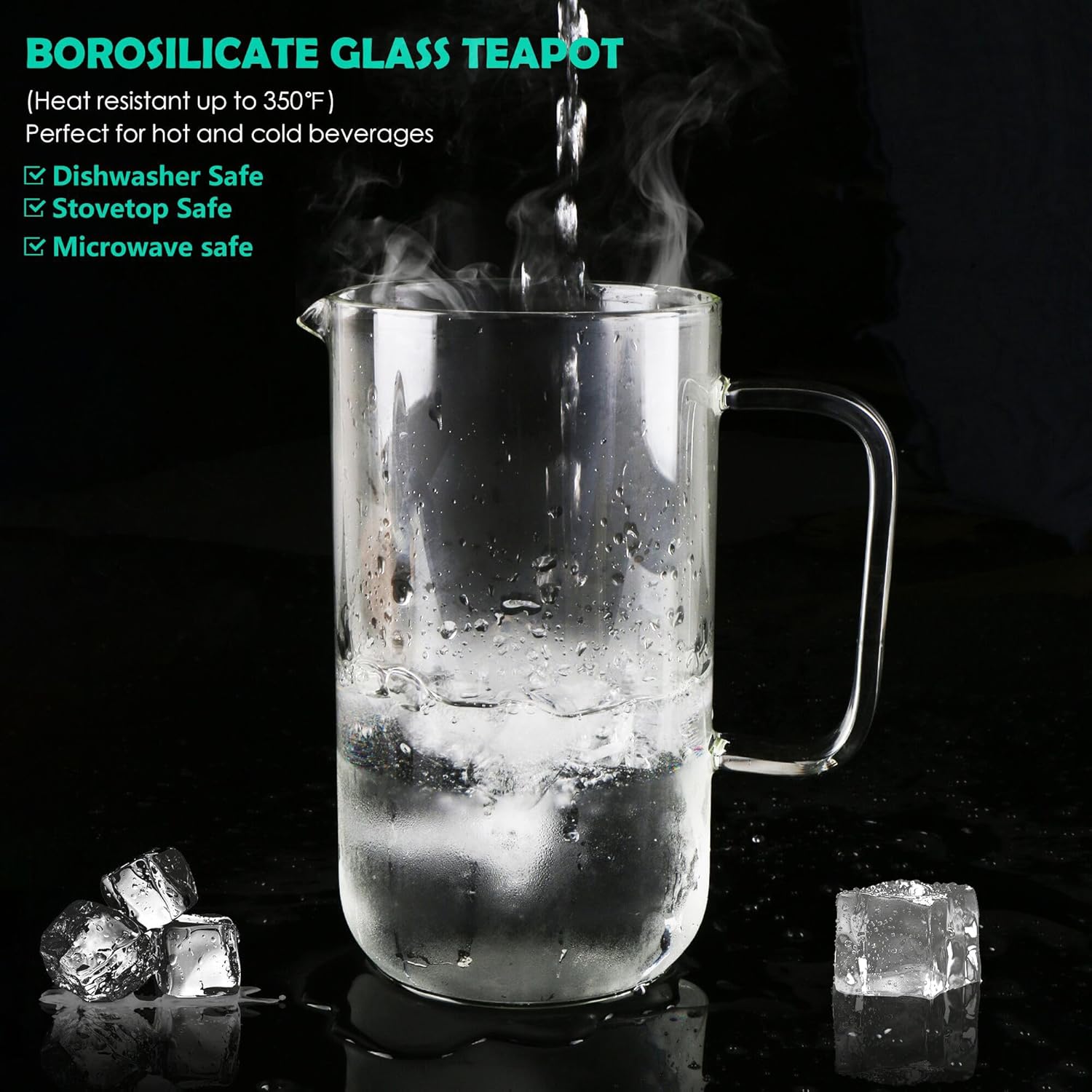 - Borosilicate Glass Construction - Durable, heat-resistant borosilicate glass that is clear, sturdy, and safe for stovetop use