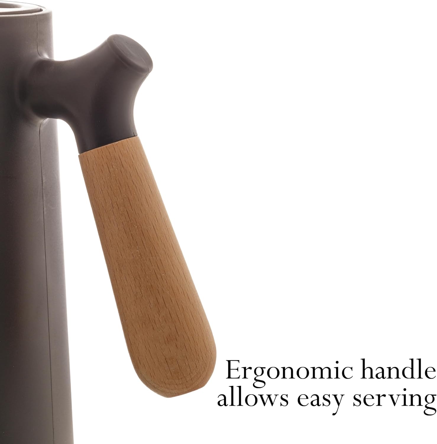 WOLFF - Thermal Coffee Carafe - 34oz / 1L Insulated Plastic Exterior Carafe for Hot or Cold Drinks - Leakproof Coffee and Tea Dispenser with Wood-like Handle and Glass Liner - Black, 34floz/1L