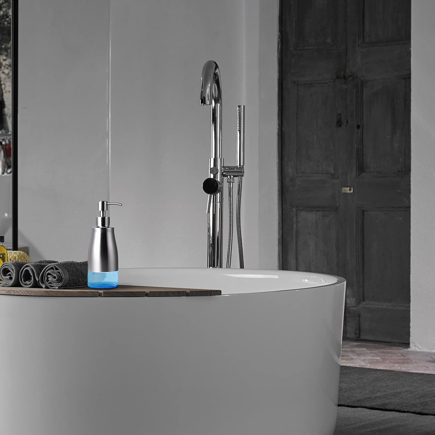 Non-Slip Soap Dispenser with Brushed Nickel Stainless Steel Case, Glass Liner, and Hand Pump for Kitchen/Bathroom. Refillable Liquid Soap Dispenser, 11oz/320ml Capacity.