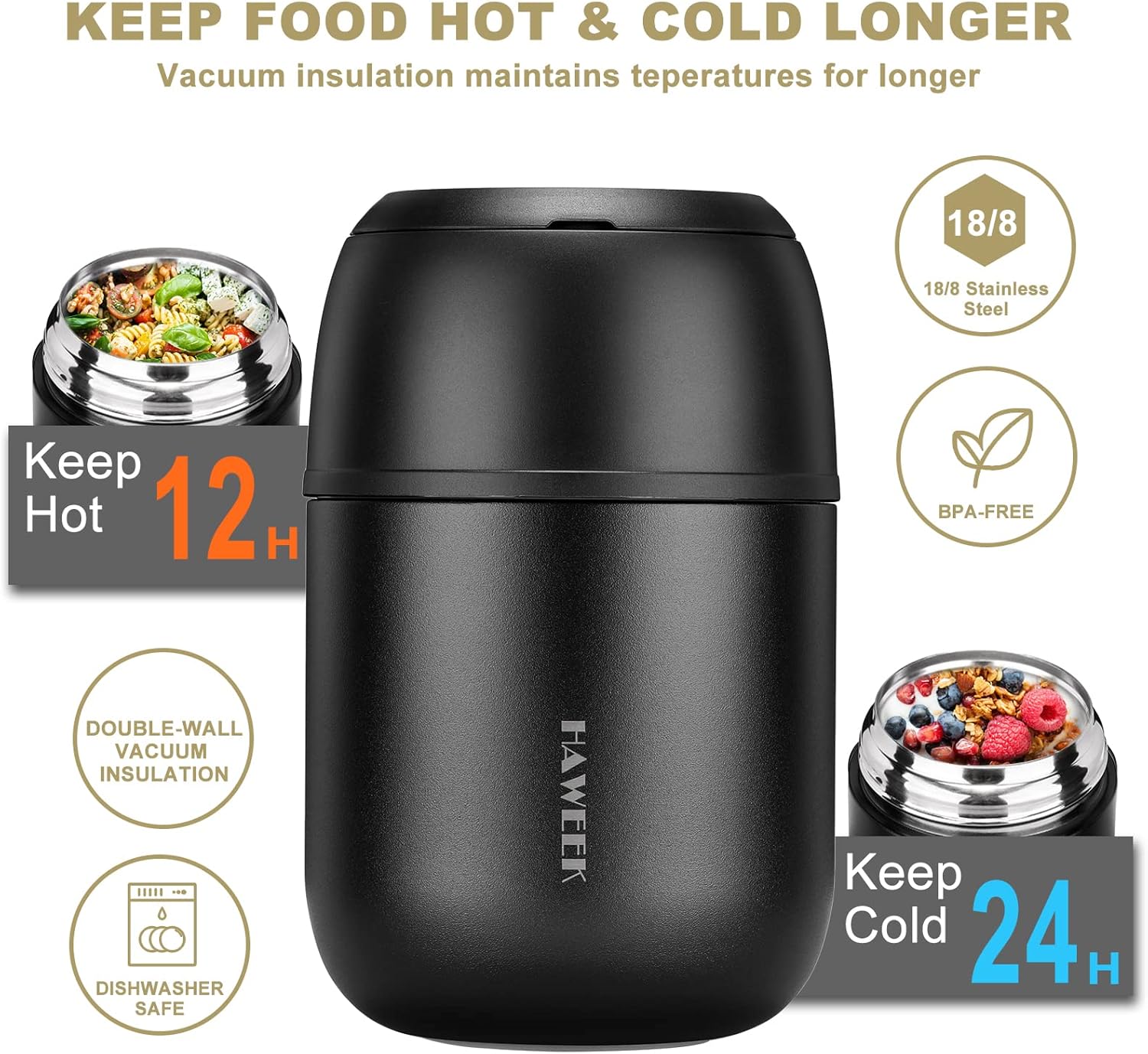 - 【Long Time Stays Hot/Cold】Double-walled construction with vacuum insulation for maximum heat retention, keeping contents warm up to 12 hours or cold for 24. The interior is constructed entirely of food-grade 304 stainless steel, ensuring hot foods never touch the plastic.