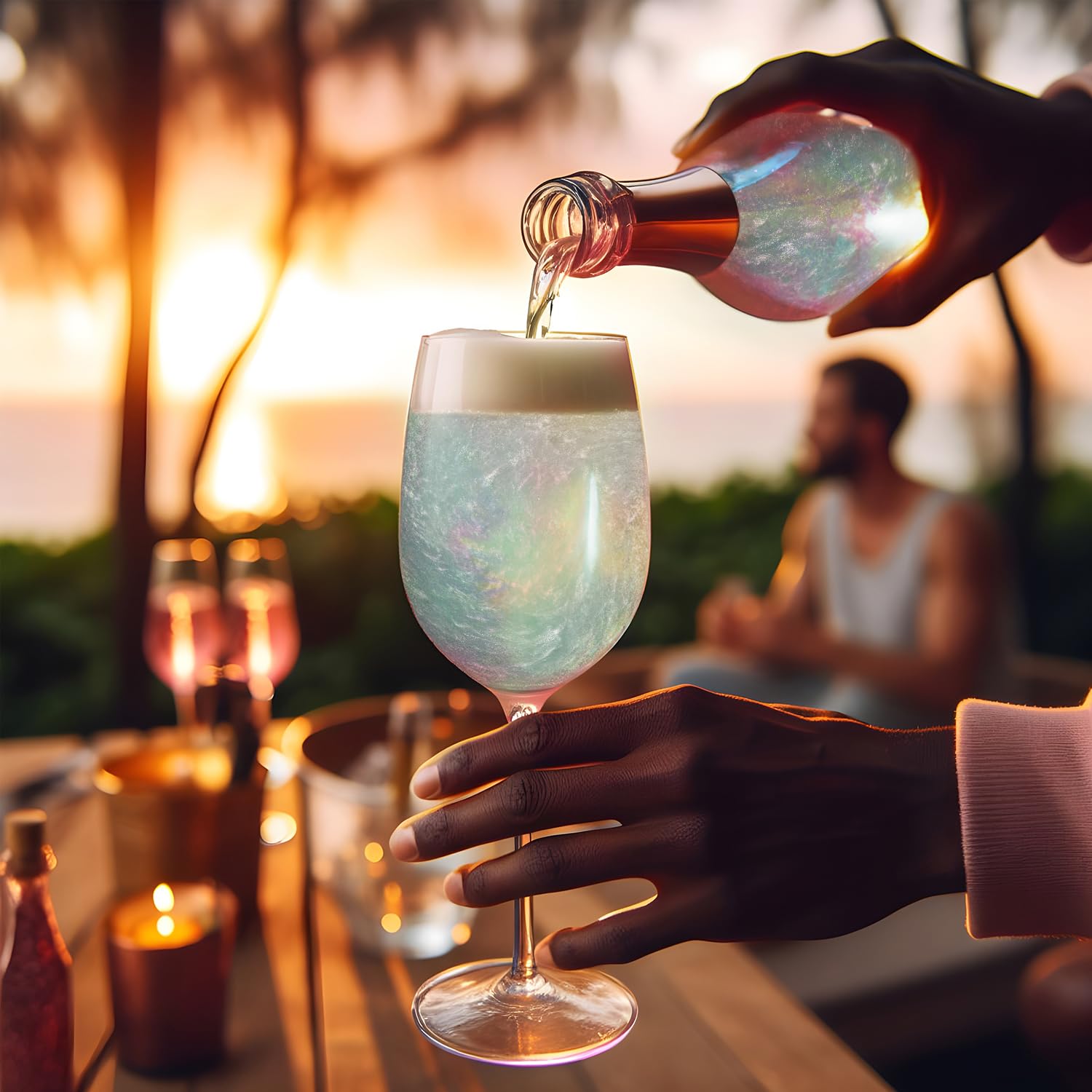 - ✨ Our iridescent green drink glitter features large granules that reflect and shine brilliantly with a multi-colored shimmer, enhancing the visual appeal of your drinks.
