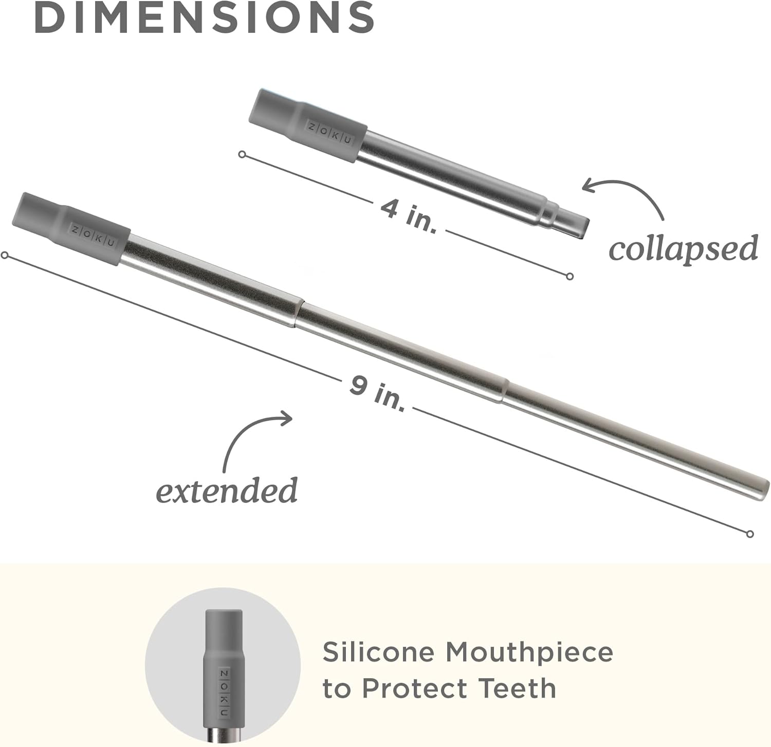 - DETAILS - Set of 3 includes 1 Purple, 1 Grey, and 1 Red ZOKU Pocket Straw, carrying cases and cleaning brushes; case measures 4.4-inches long; Dishwasher Safe (top rack only); BPA and Phthalate Free; designed in the USA