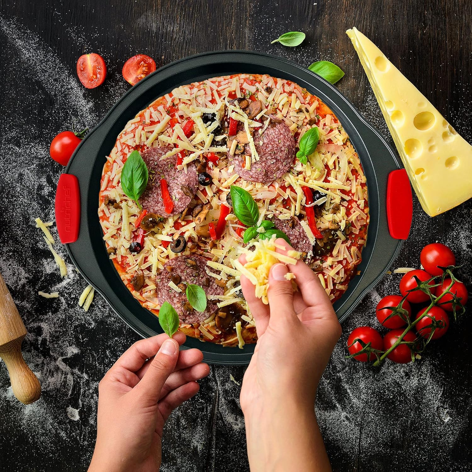 - HEATPROOF SILICONE HANDLES: The commercial grade restaurant quality kitchen bakeware features red silicone handles to prevent accidental burns. Also stain-resistant, easy to clean & dishwasher safe but hand washing is recommended to extend pan life