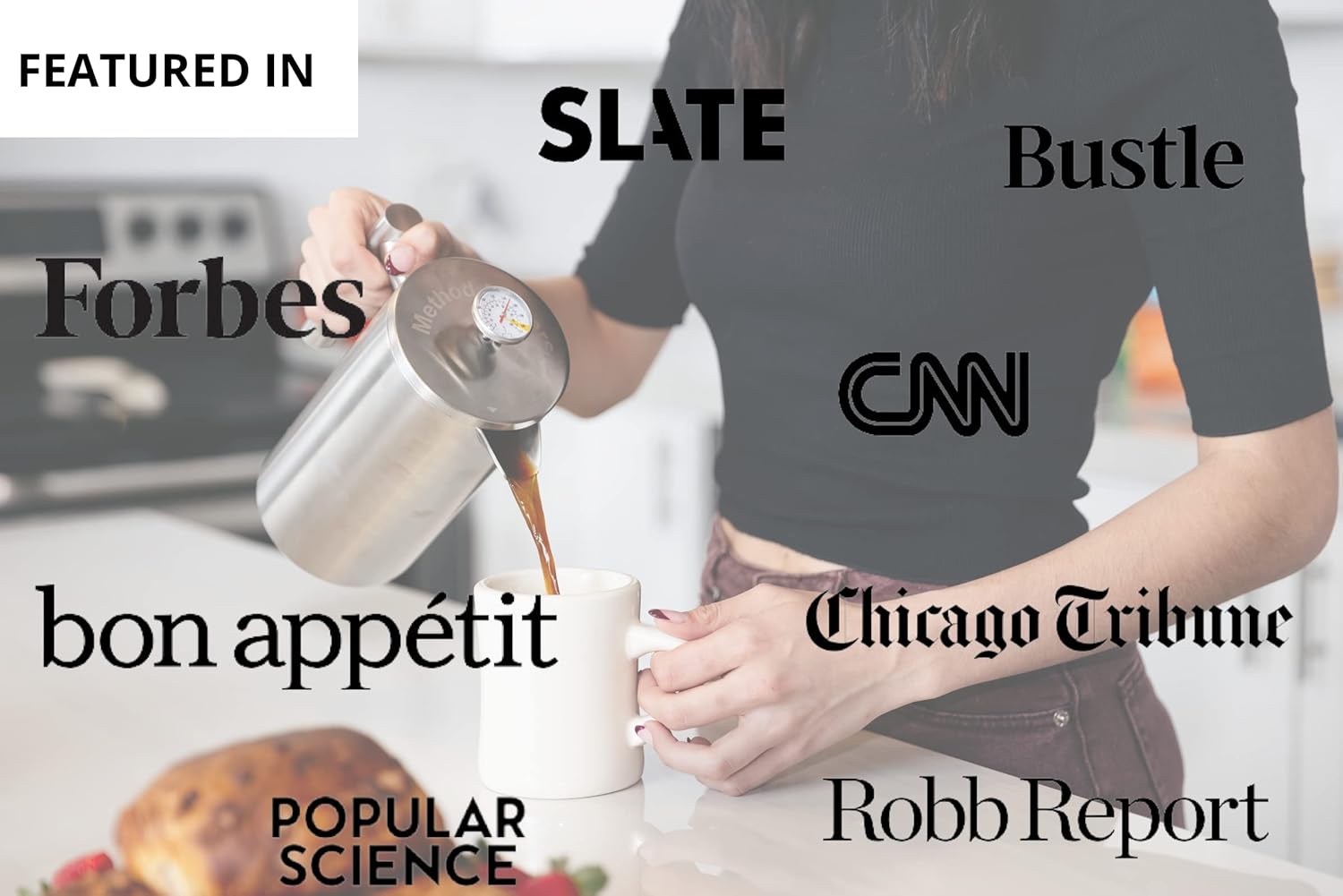 - BARISTA QUALITY. Made from premium food grade stainless steel, our insulated French press kit is durable and rust-proof. It has a sleek modern design with a stay-cool handle that makes lifting and pouring a breeze. We even included a free wood barista spoon. Stirring the grounds during the brew disperses the coffee grounds for even extraction and balanced flavors. A coffee press that will surely look good in your kitchen and makes a lovely gift to your loved ones!