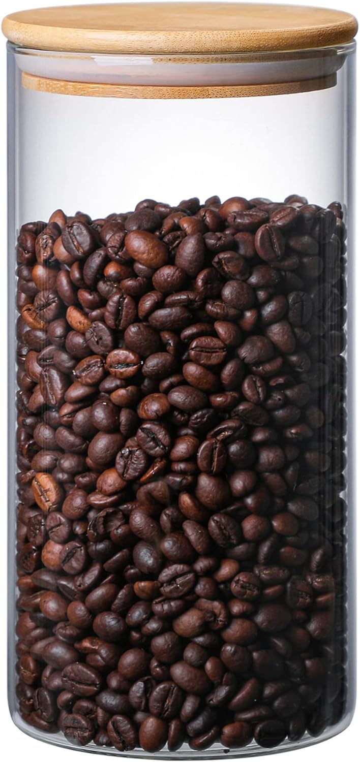 MOLFUJ 1200 ML / 40 FL Oz Glass Storage Container with Wood Lid, Stackable Clear Decorative Organizer Bottle Canister Pantry Jar with Air Tight Wooden Lid for Food, Coffee, Candy, Sugar, Salt, Tea