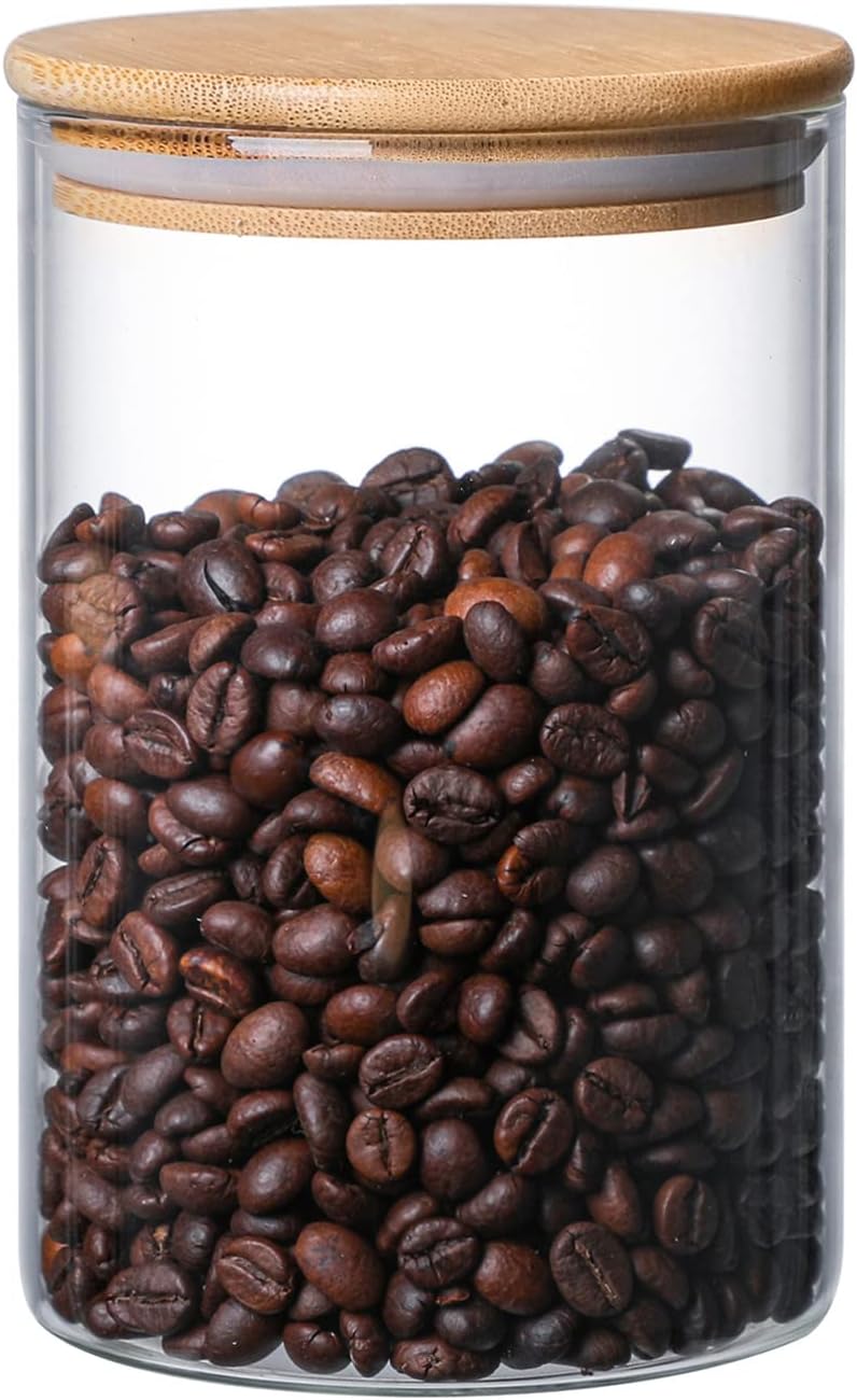 MOLFUJ 960 ML / 32 FL Oz Glass Storage Container with Wood Lid, Stackable Clear Decorative Organizer Bottle Canister Pantry Jar with Air Tight Wooden Lid for Food, Coffee, Candy, Sugar, Salt, Tea