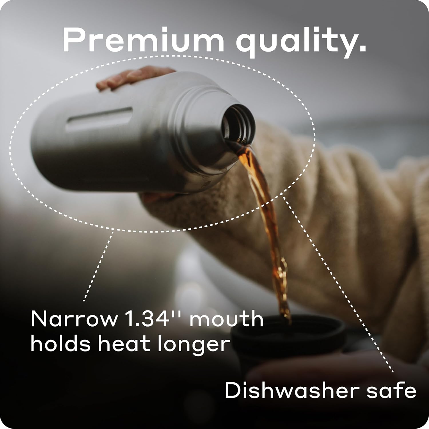 - EXCEPTIONAL TEMPERATURE CONTROL: Keeps cold up to 72 hours and hot up to 48 hours. Triple-wall vacuum insulation, high-quality insulated layer and narrow mouth help to hold the desired temperature. The outer part of the thermos has a copper top coating to keep coffee and tea hot, while iced water is kept cold