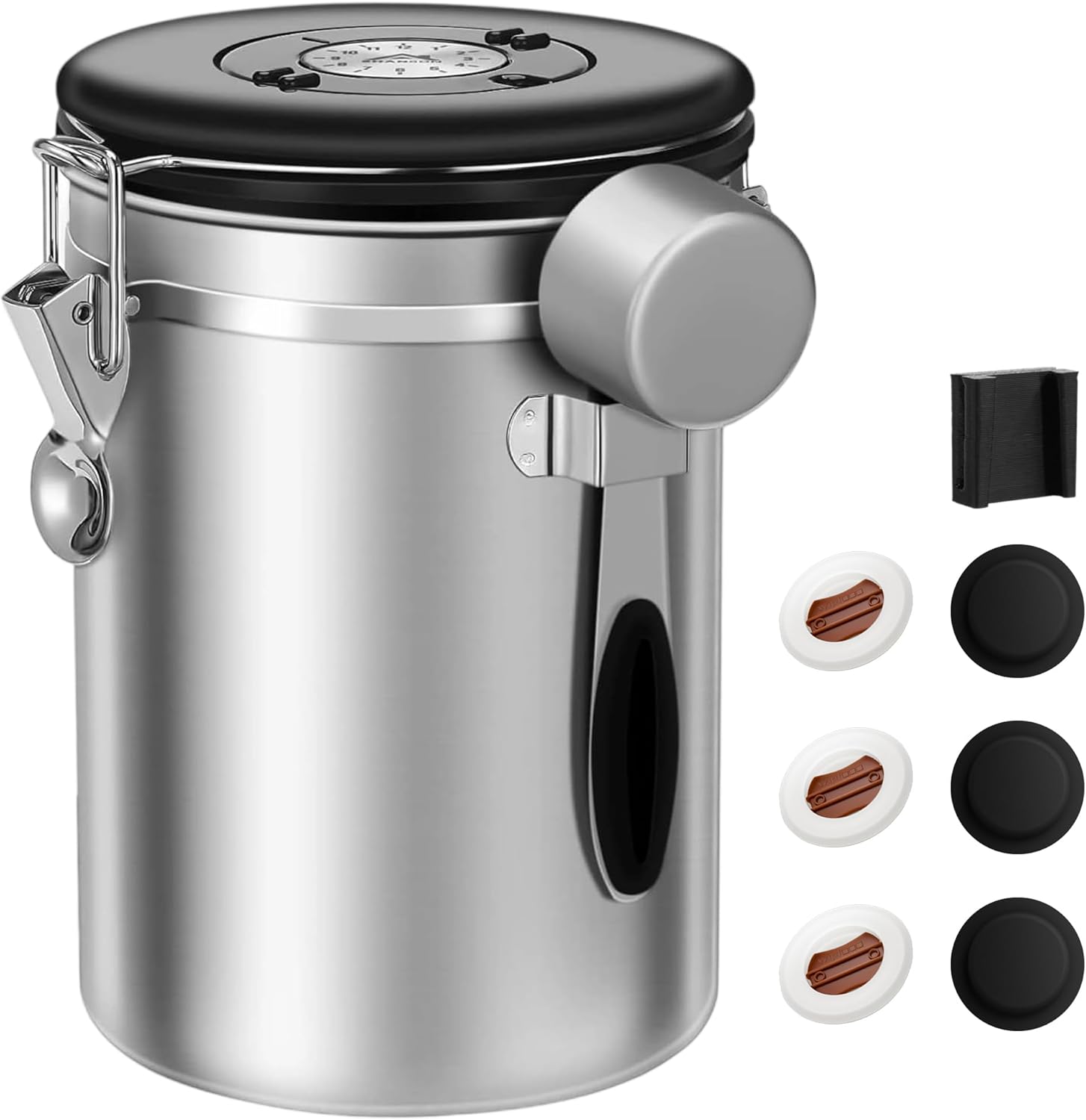 - 【BUILT-IN DATE TRACKER】A simple yet incredibly useful feature! The date tracker lets you monitor when the canister was last filled, helping prevent your coffee from going stale unnoticed. A stainless steel scoop is conveniently attached to the side, so you’re never left searching for a measuring spoon. Features a superior airtight seal for maximum freshness.