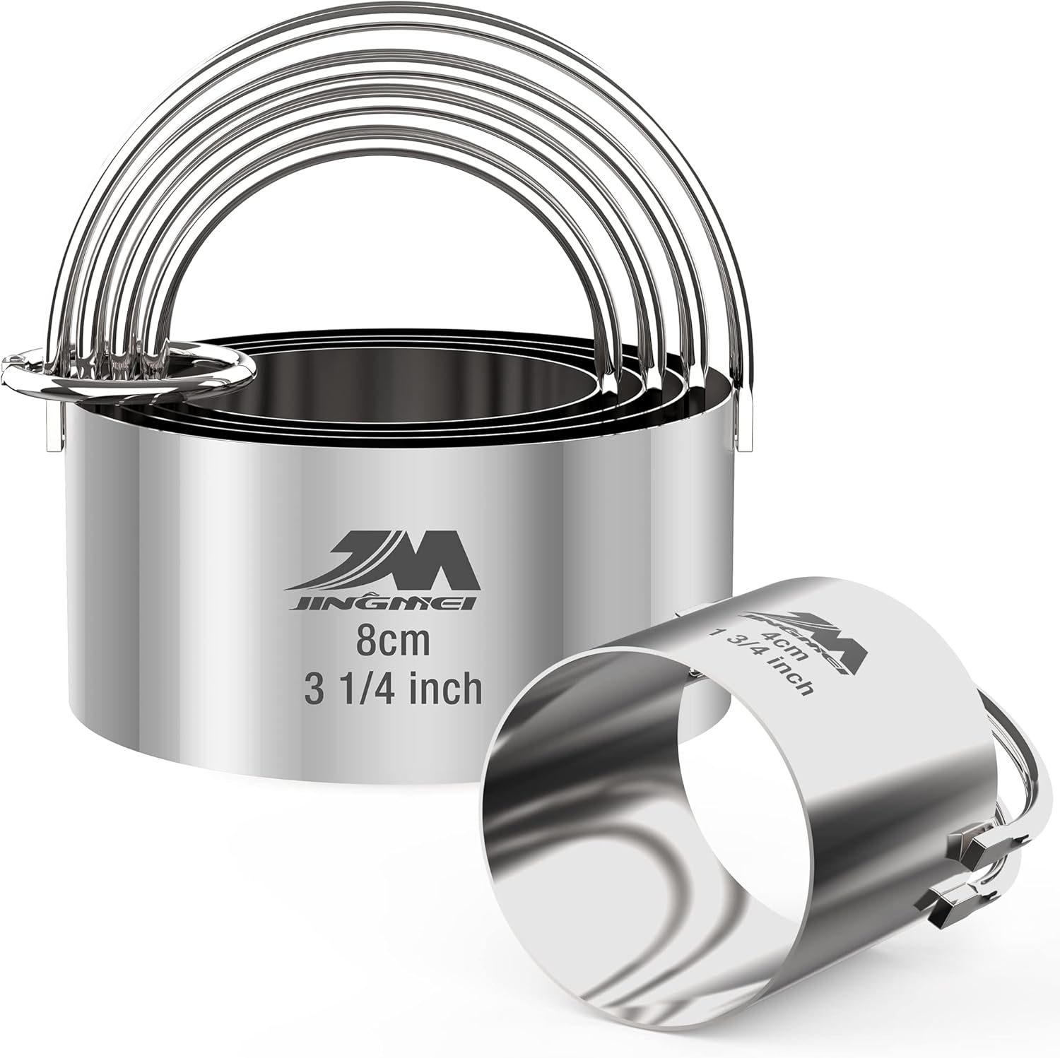 - ❀{5 different sizes}The circle biscuits cutter set of 5 different sizes, Biscuit cutter set/round cake cutter sizes: Dia. 1 3/4, 2, 2 1/4, 2 3/4, 3 1/4 inch (4, 5, 6, 7, 8 cm), Height: 1 3/4 inch (4 cm). Meet your different needs.