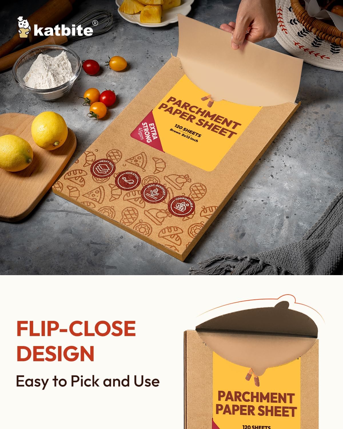 Katbite 120Pcs 8x12 inches Parchment Paper Sheets, Heavy Duty Unbleached Baking Paper, Pre-cut Parchment Paper for Baking, Air Fryer, Grilling, Steaming