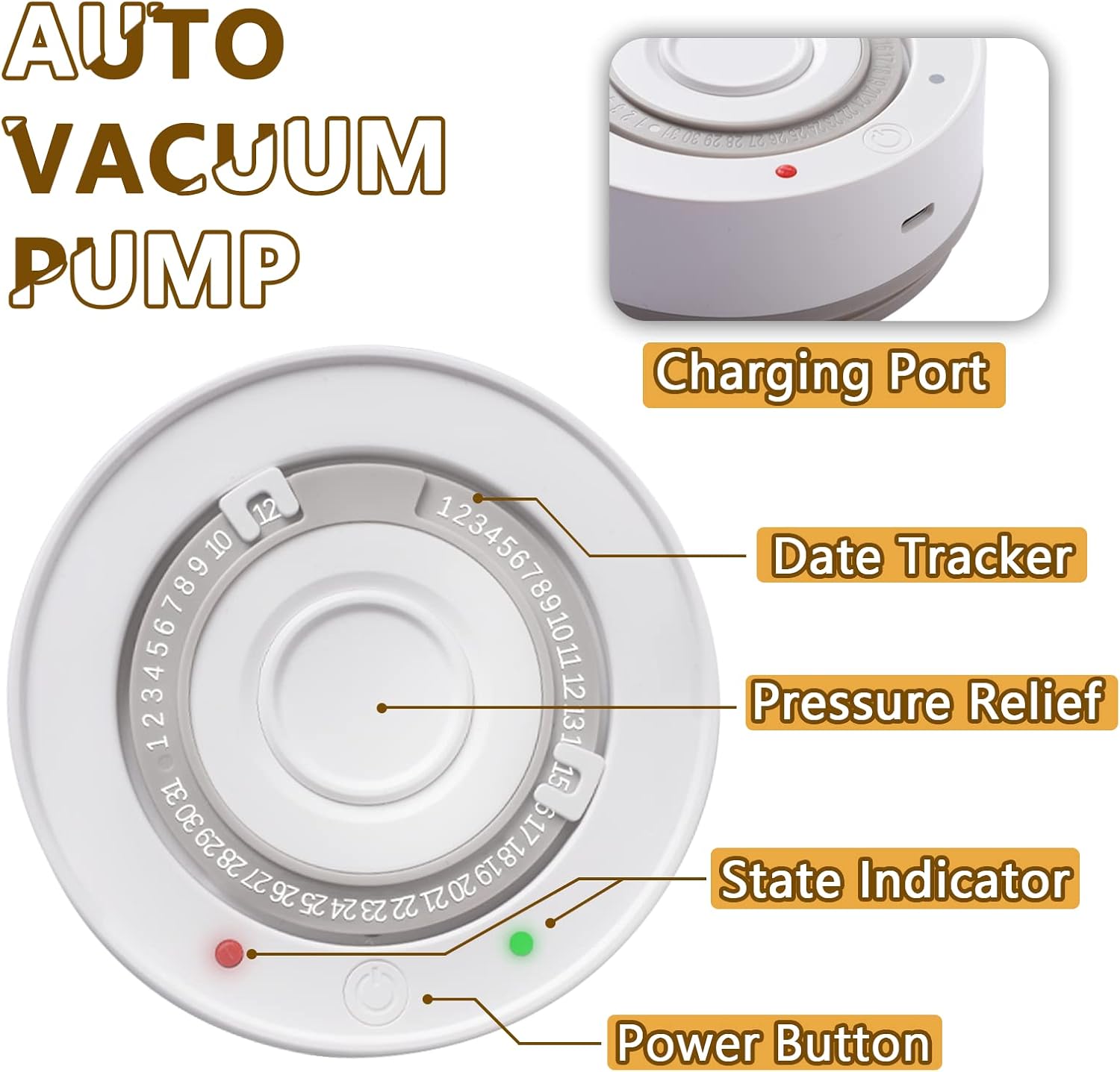 - 【ONE BUTTON OPERATION & DATE TRACKER】Simply press the top button on Minidiva smart vacuum food containers and the air in the canisters will exhaust within 10 seconds to 20 seconds, with the lid in sealed condition. And you can turn the grey date tracker on the lid to record the storage date, knowing the exact storage date will help reduce food waste.