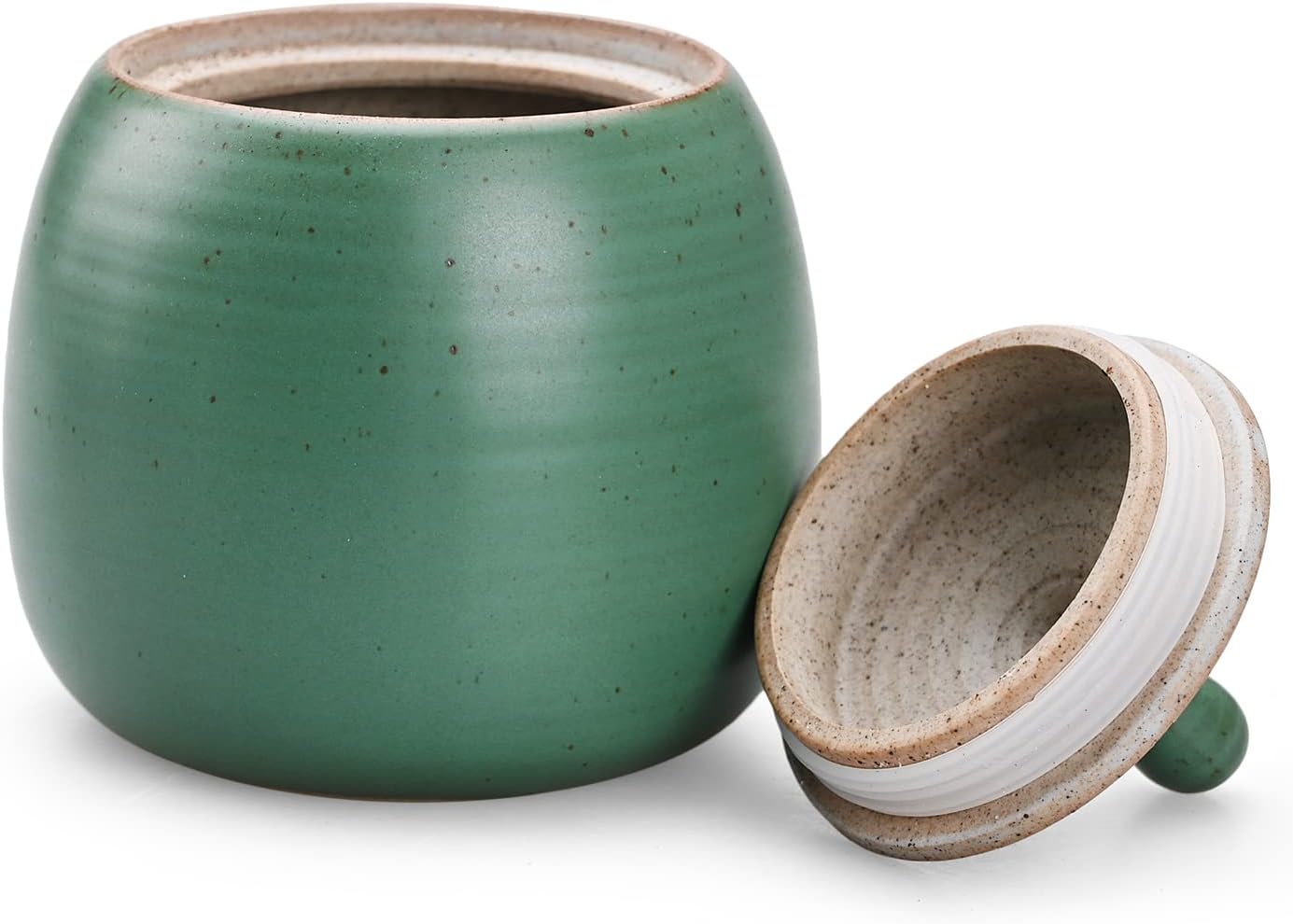 Retro Kitchen Canisters Ceramic Food Storage Jar Roud Shape with Silicone Airtight Lid for Tea, Coffee, Nuts, Herb, Spice, Sugar (Green)