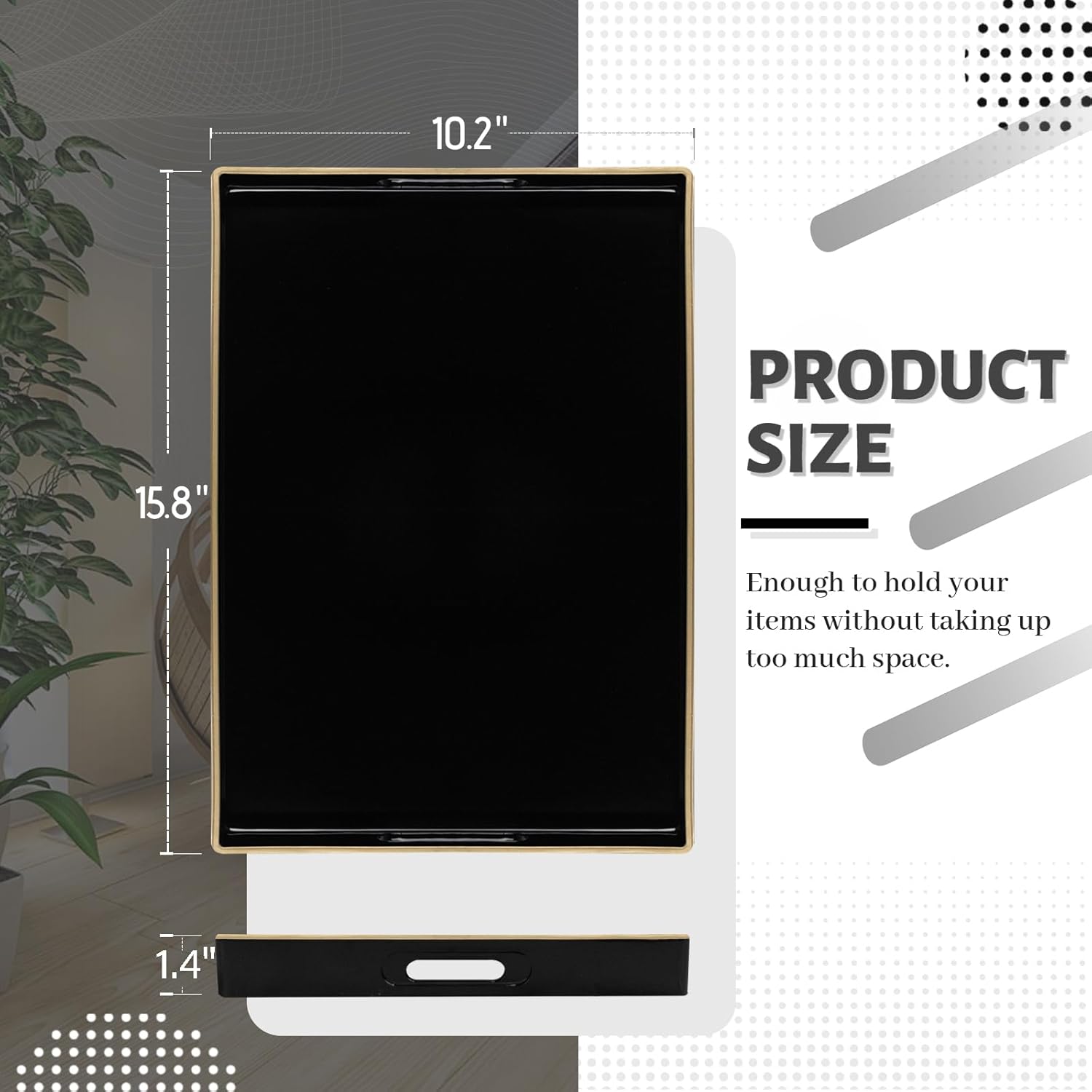 - TRAY DECOR: Black tray is often used to present food and drinks in an appealing and organized manner. Rectangle tray can enhance the visual appeal of the items being served, making them more enticing to guests or customers. Also place it on your bathroom vanity as an exquisite showcase for perfumes, jewelry, or bath accessories.