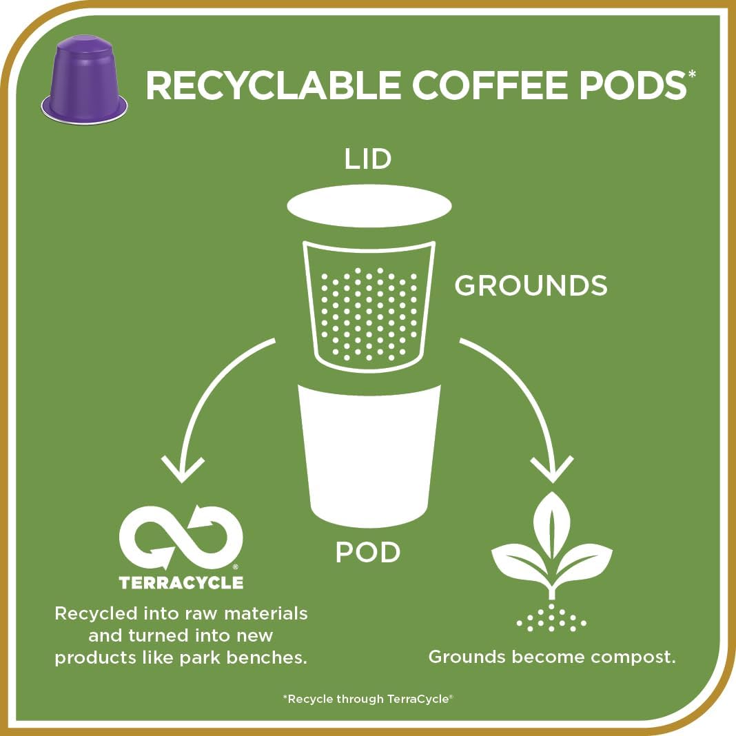 - Recyclable Pods: Environmentally conscious coffee pods made from aluminum. Participate in our TerraCycle recycling program to ensure responsible disposal. Enjoy premium espresso while supporting sustainability efforts.