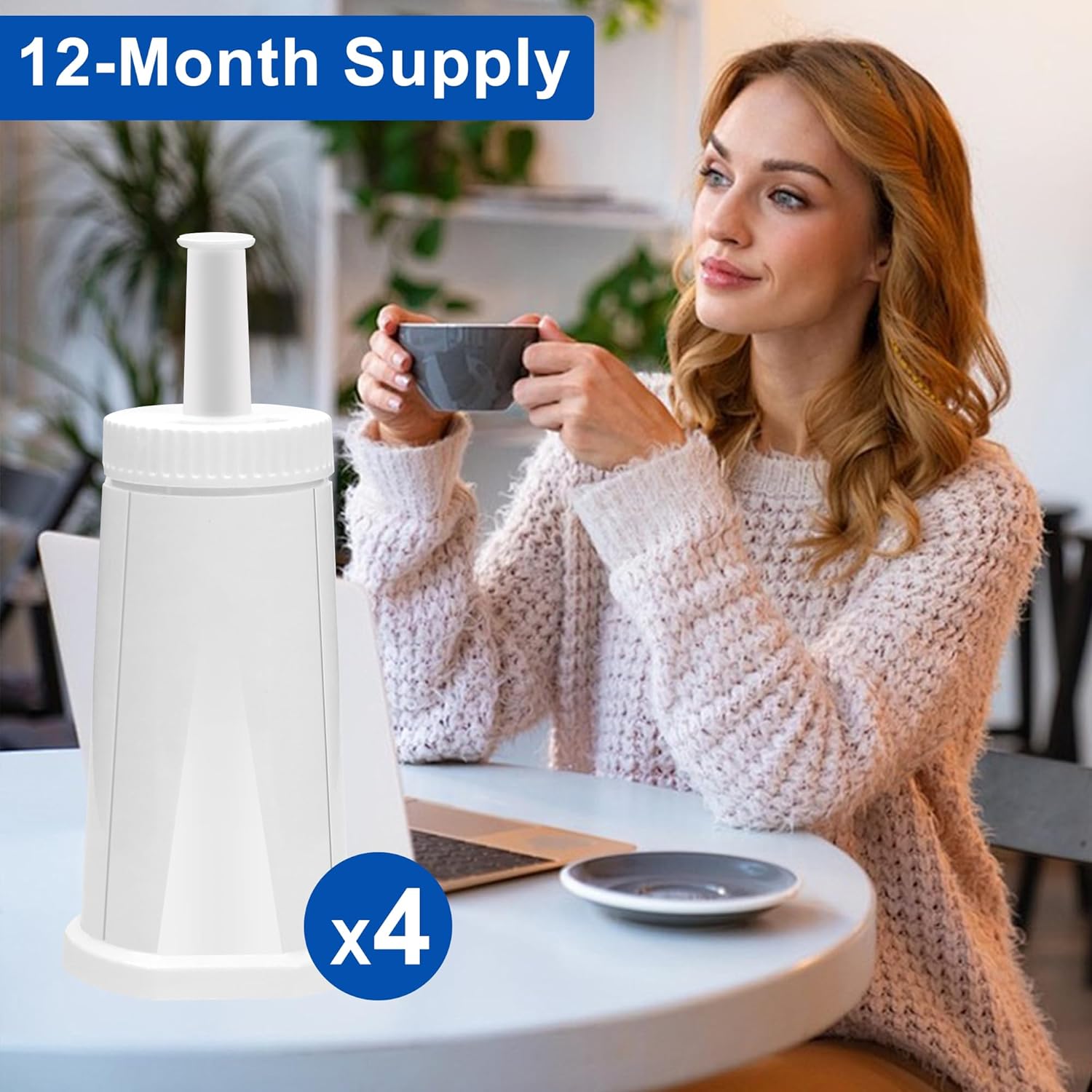 - 𝐆𝐫𝐞𝐚𝐭 𝐕𝐚𝐥𝐮𝐞 𝐚𝐧𝐝 𝐋𝐨𝐧𝐠 - 𝐋𝐚𝐬𝐭𝐢𝐧𝐠: Each package offers excellent value, with 4 individual filters. We recommend replacing the filter every 3 months for optimal performance, providing you with a 12 - month supply depending on the pack size.Remove impurities, reduce water hardness and better improve the flavor of coffee. It is you who can enjoy the feeling and charm of a coffee shop without leaving your home.